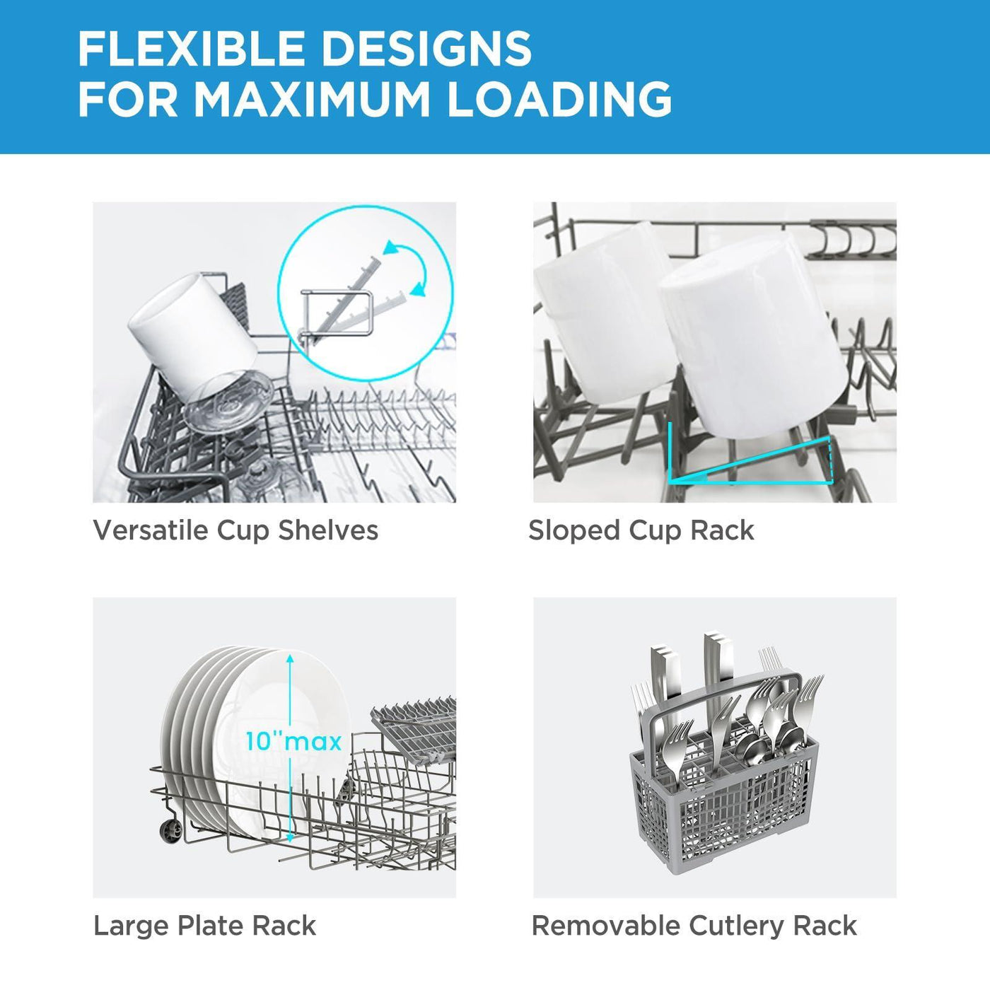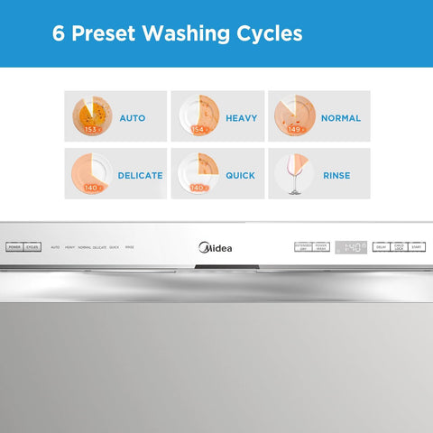 - 6+2 Washing Cycles- Most of the cleaning cycles, including Auto, Heavy, Normal, Quick, Rinse and Delicate, helped with extra-drying function and power wash, and deliver sparklingly cleaned and dried dishes. And Rinse, are designed for Midea compact dishwasher, providing high flexibility for you to choose in different situations.
