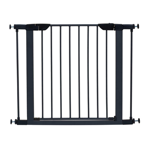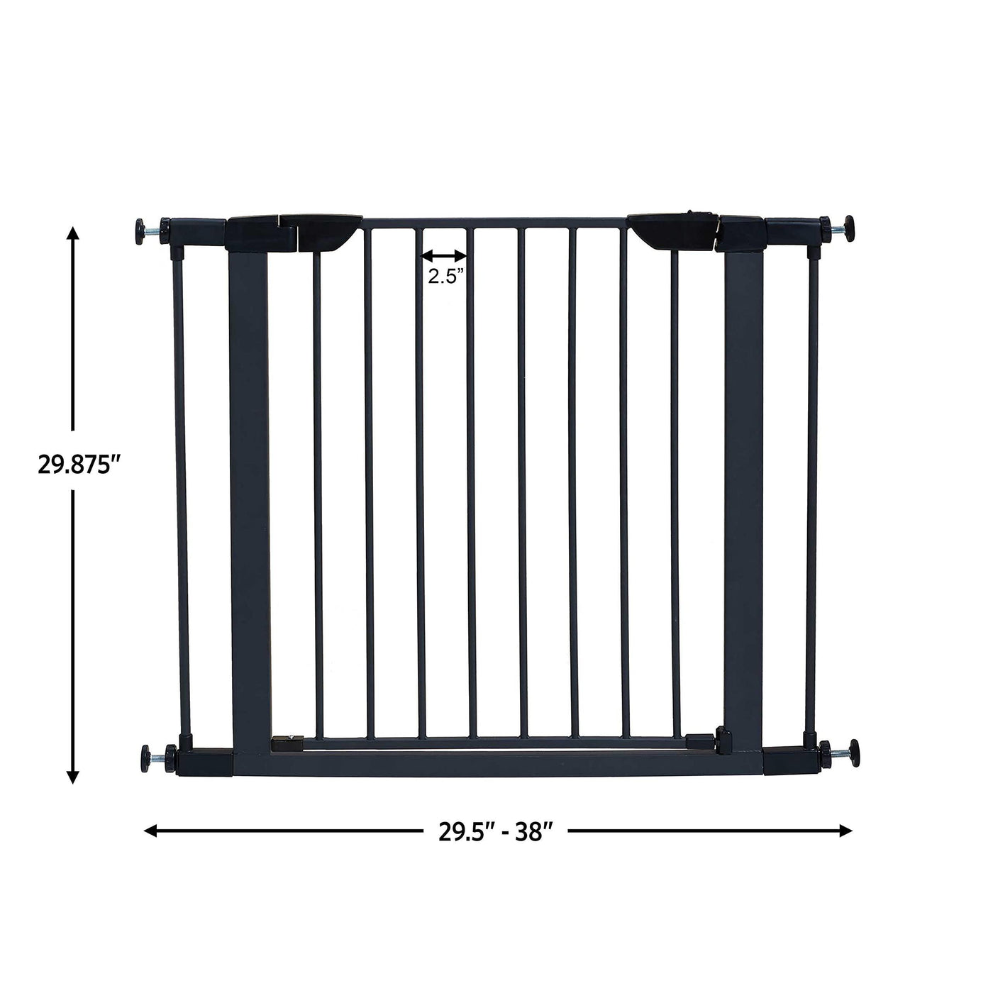 MidWest Homes for Pets 29-Inch High Walk-Thru Pressure Mounted Steel Dog Gate, Expands to 38 Inches Wide, Includes 3-inch Extensions, Textured Graphite
