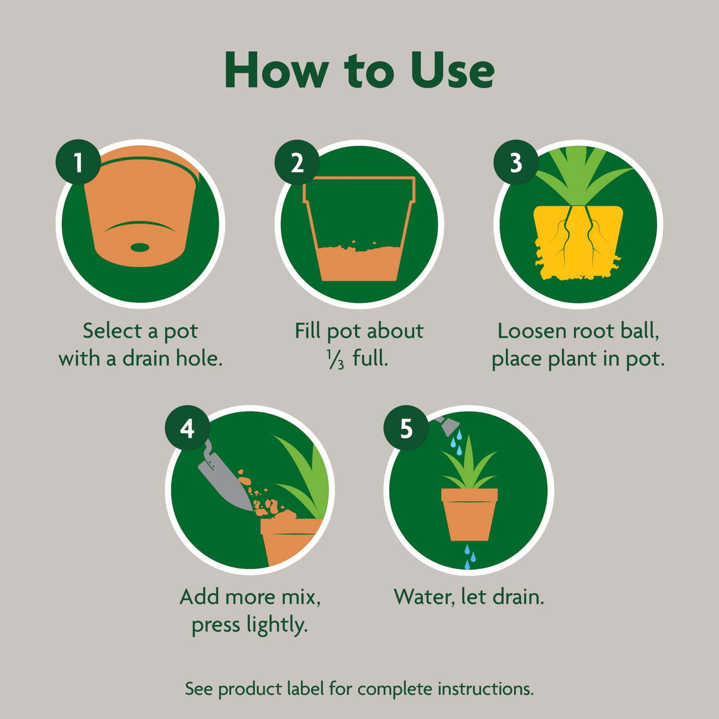 - How to use: To use, fill a container about 1/3 full with potting mix; add more mix after placing your plant in the pot
