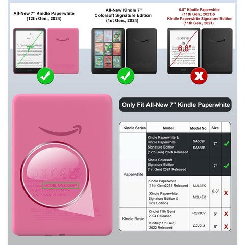 - Compatibility: Designed exclusively to compatible with 7" Amazon All-New Kindle Paperwhite&Kindle Paperwhite Signature Edition (12th Gen - 2024) and Kindle Colorsoft Signature Edition (1st Gen - 2024). Not fit other prior generation Kindle devices