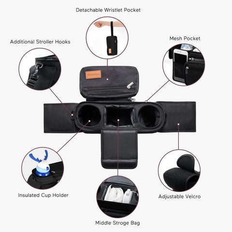 - [Versatile Bag] With a detachable wristlet pocket to take your most needed items with you. You can also remove the entire organizer from the stroller and wear it over your shoulder using the included straps.