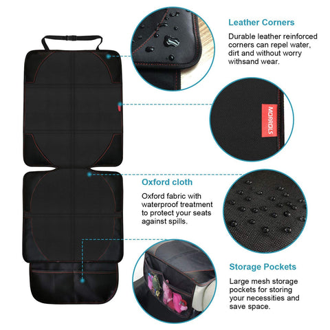 MORROLS Car Seat Protector, 2 Pack Carseat Protector with Thick Padding, Baby/Pets for Child Car Seat-Mesh Pockets-Waterproof-Universal Size(Black)