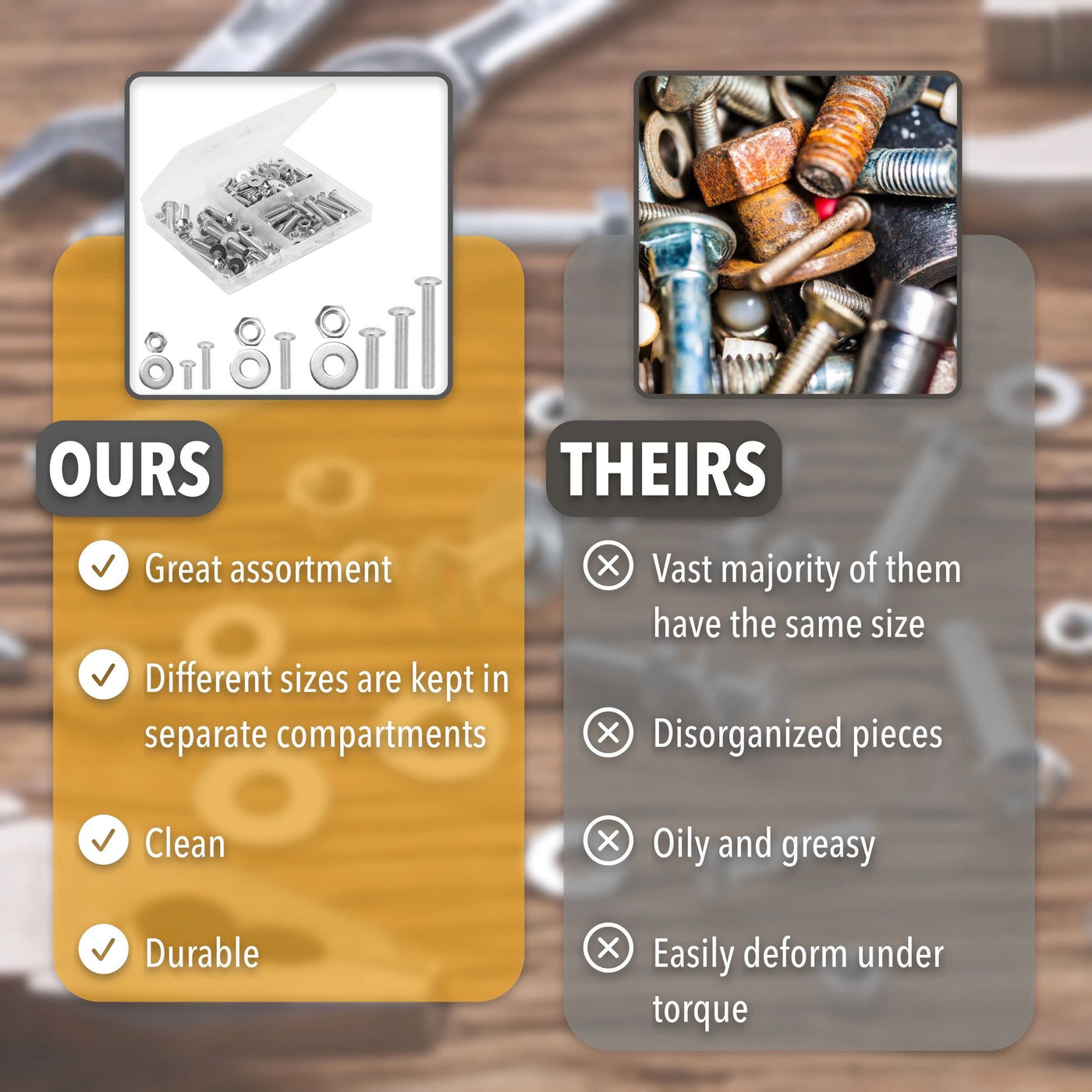 - Our bolt and nut kit is an ideal tool for home and workplace, professionals, amateurs, handypersons, repair men, woodworking, construction, furniture, 3D printing projects, communication equipment, ship assembly, and so on.