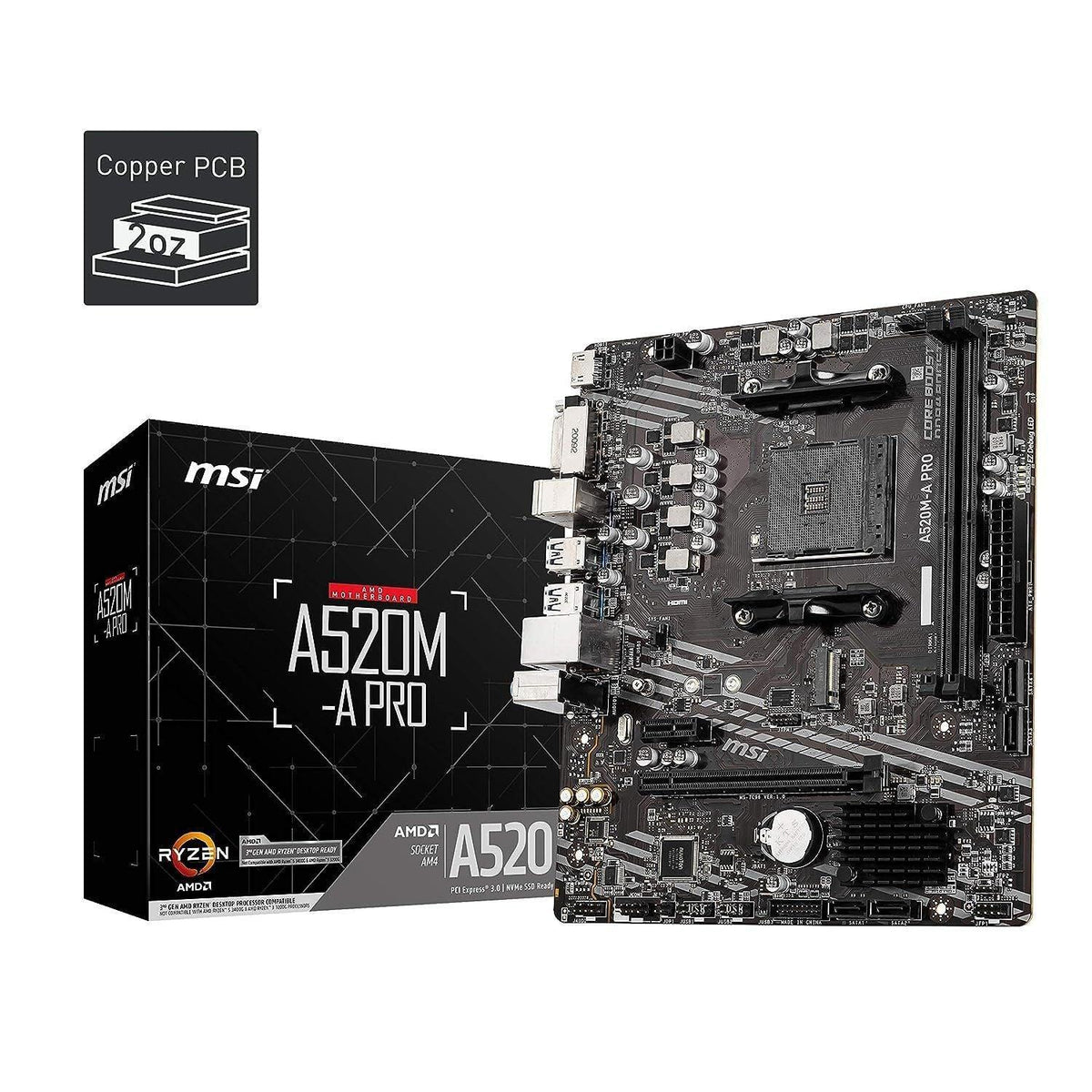 MSI A520M-A PRO Gaming Motherboard (AMD Ryzen 5000, AM4, DDR4, PCIe 3.0, SATA 6Gb/s, M.2, USB 3.2 Gen 1, DVI/HDMI, Micro-ATX)