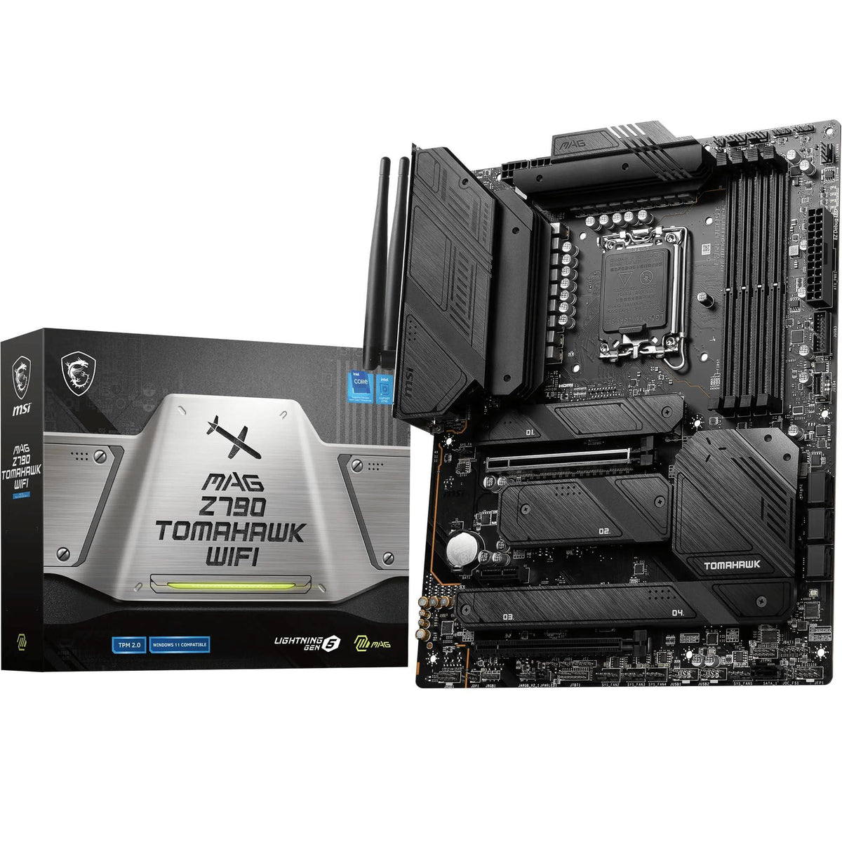Details: The MAG Z790 Tomahawk fights alongside gamers in pursuit of honor as the motherboard platform of choice for gamers. With added military-inspired elements in these gaming products, they were reborn as the symbol of sturdiness and durability.