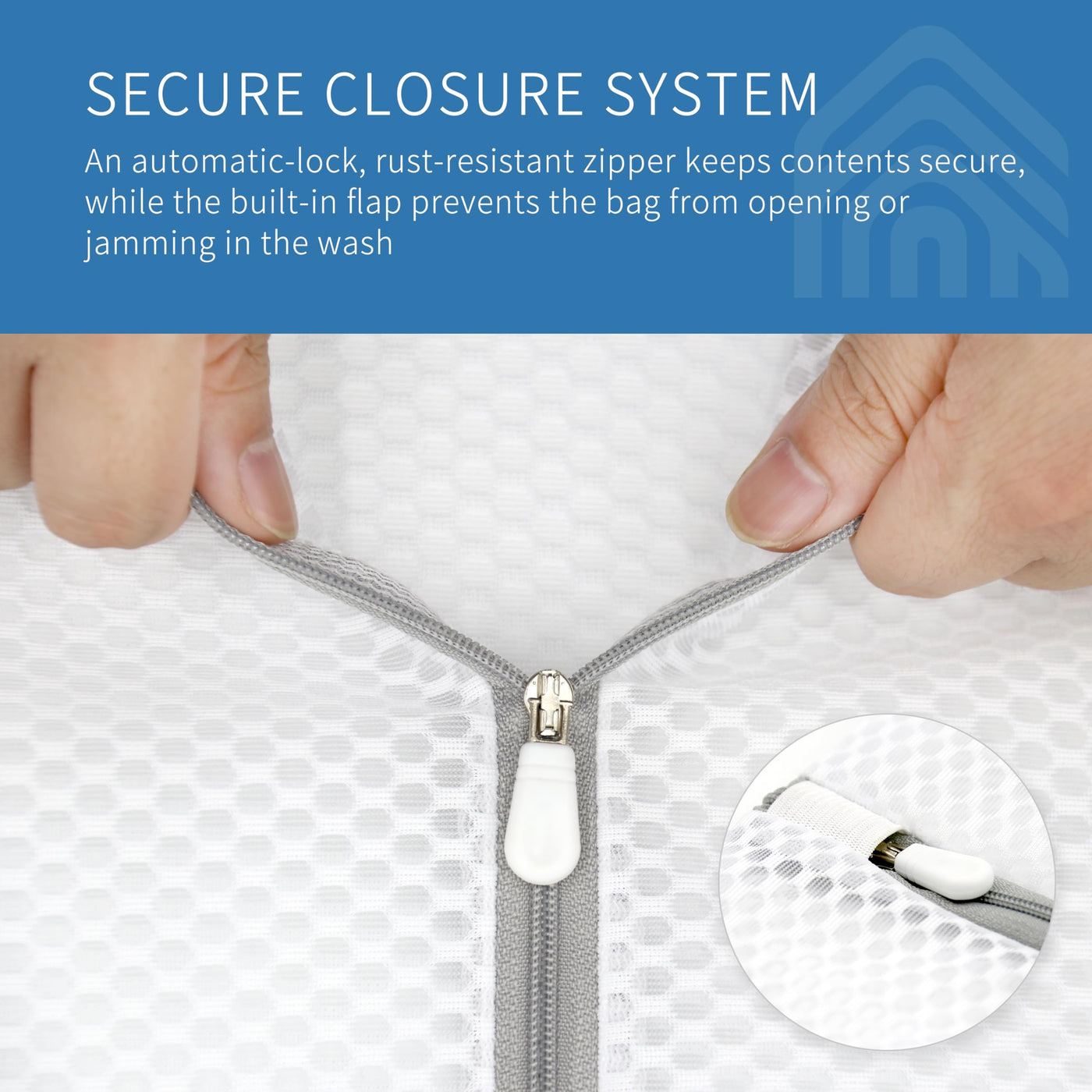 - Our premium anti-rust zipper with auto lock and smart zipper protection will prevent the bag from opening during washing and drying cycle. You’ll have a quiet laundry experience