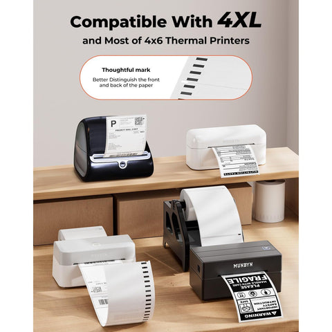 - Wide Printer Compatibility: Shipping labels 4x6 compatible with Munbyn 130B, 941BP, 129B, 941U, 941AP, RW401AP, RW403B, Rollo, Jadens, Nelko, Pedoolo, Dymo 450, Dymo 5XL, or Dymo extra-large Lw 1744907 1755120 1951462 and most thermal printers. Note: It is not compatible with Brother printers. It is only compatible with direct thermal printers, not with laser or inkjet printers