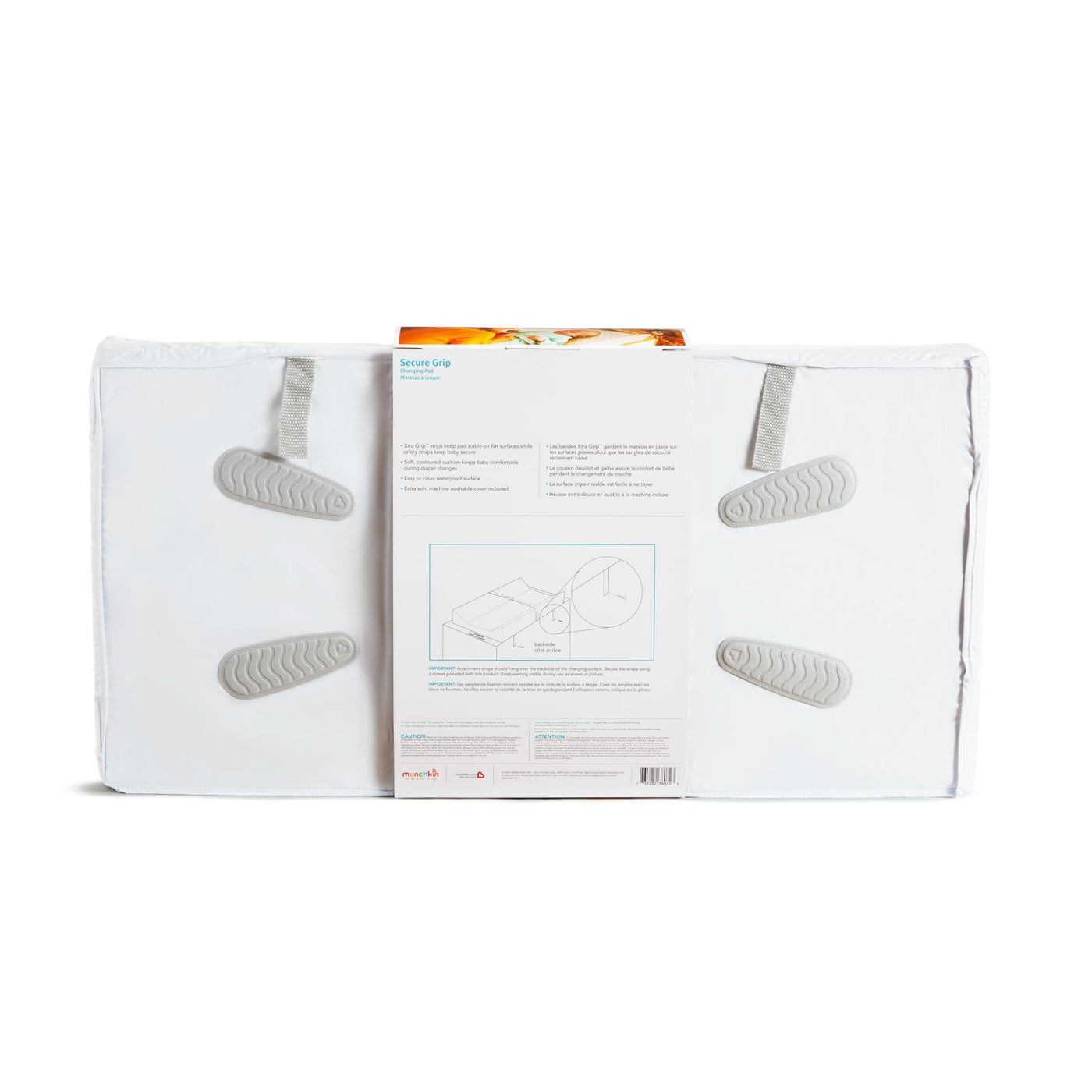 Details: If only your baby would stay still during diaper changes, well we know that never happens. Keep them comfy and safe with the Secure Grip Changing Pad. Featuring Xtra Grip rubber strips and safety straps that buckle, the Secure Grip Changing Pad stays in place during diaper changes and helps keep your little one safe as they squirm, wiggle and twist. And for those moments you need additional stability, fabric straps with screws are included to securely attach to your dresser or changing table. Plus, the soft contoured cushion is made of waterproof fabric that is easy to clean.