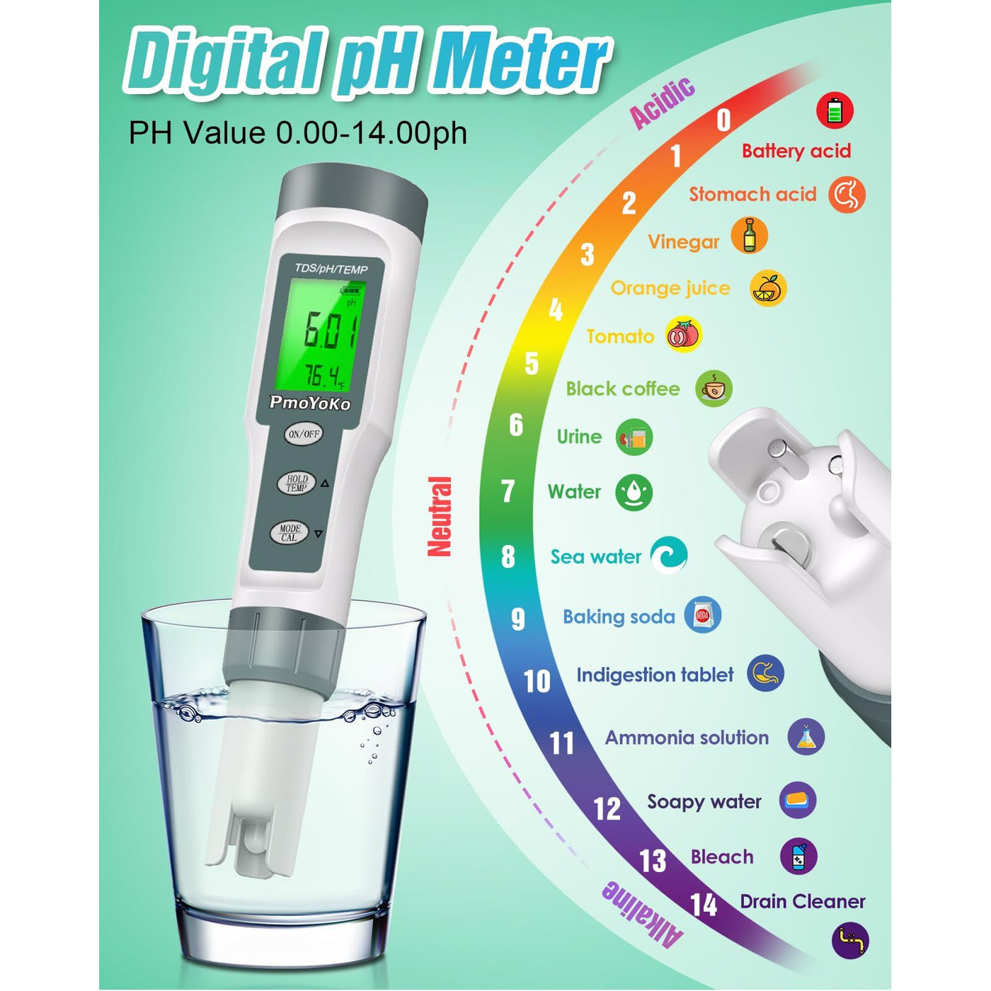 - 【pH Meter to Improve Water Quality】This pH/TDS meter can help you find out quality water value. Water with equal pH, TDS levels are perfect for people's daily needs for drinking water.Aquarium Hobbyists Must-Have! Tests pH to prevent fish gill irritation, TDS to control water hardness, and temp to reduce fish stress—covers tank setup, water changes, and disease prevention. Solves' cluttered fish-keeping tools' hassle and supports better fish survival.