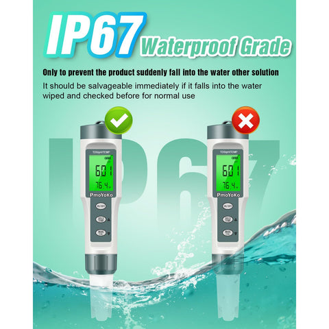 - 【3-in-1 pH Meter】pH meter has a three-in-one function, which can measure PH, TDS and temperature with high precision at the same time. All-round measurement of water quality to ensure healthy water quality. Replaces 3 single - use tools, simplifying water testing for pool care, gardening, and daily use—no more switching devices.