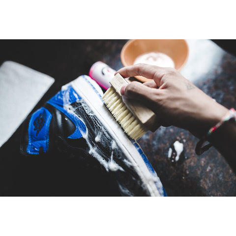- JUST A FEW DROPS (Please Read Directions on Bottle): This is a shoe cleaner CONCENTRATE - A little goes a long way. Follow instructions on the bottle and keep shoes ( Nike, Jordans, Vans, etc.) bike, black, white, sandals, boots, espadrille, and fabrics looking new again. Kids enjoy seeing the results of once dirty shoes now brand new again! Pairs well with your favorite shoe spray!