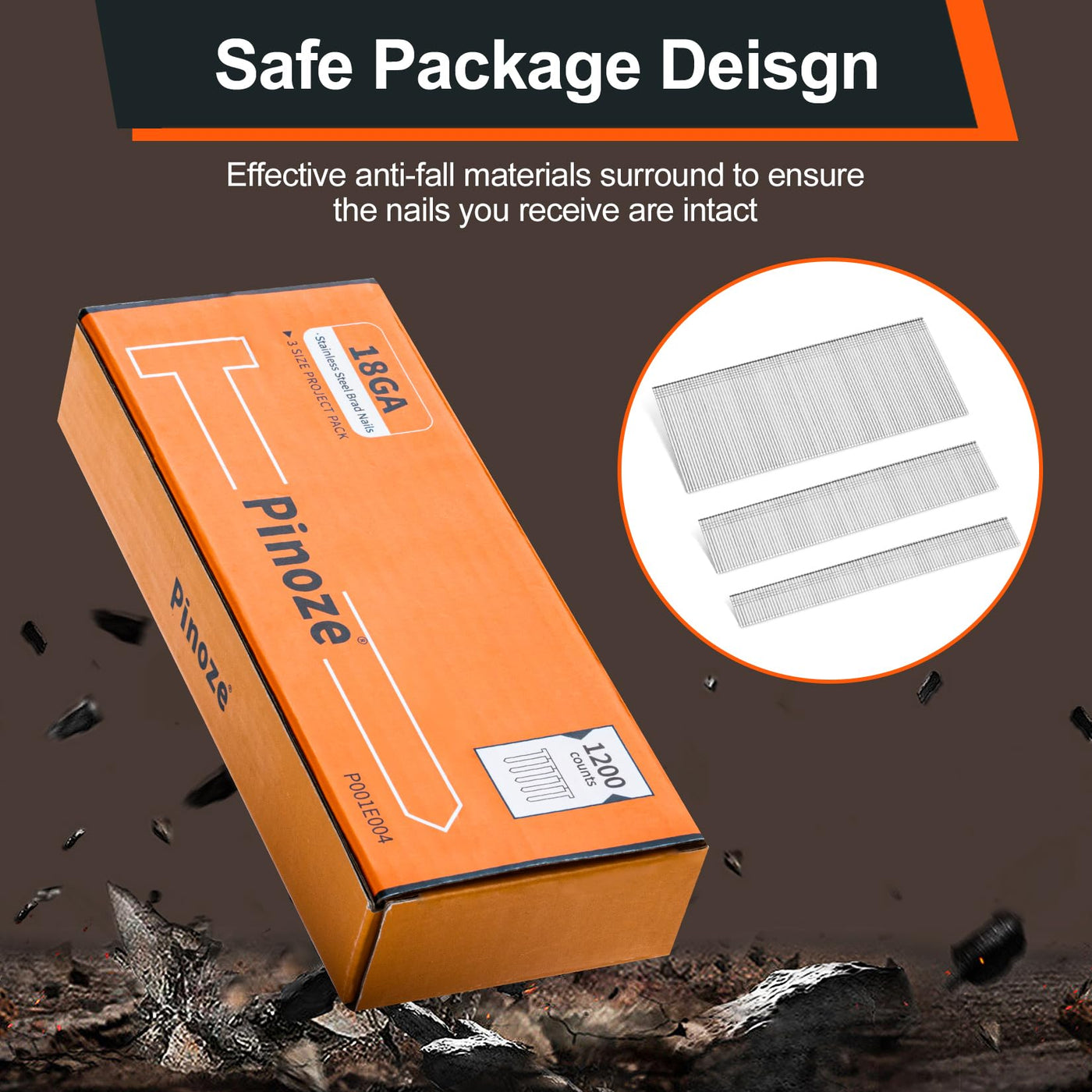 - 【RUST-RESISTANT MATERIAL】- All brad nail gun nails are made of high quality 304 stainless steel , which is built to last through multiple projects. Its strong waterproof performance can prevent rust and corrosion even in humid environments, with a longer service life. Very suitable for outdoor and indoor carpentry work.