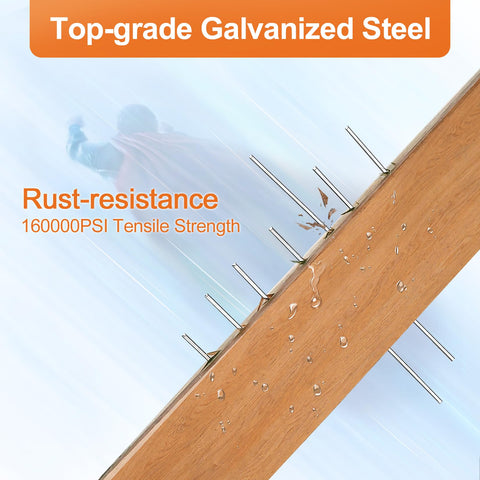 - [Rugged and Durable Material] -- Constructed of premium galvanized steel to effectively resist rust and corrosion. Ultimate tensile strength (UTS) up to 160,000 PSI. Each row includes 100pcs nails which are bonded together with high quality imported glue to avoid fracture;