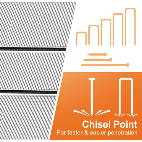 - [Sharp Chisel Point] -- Designed to drive the nails/staples into objects with fewer jams, buckles, and interruptions. Easily and quickly penetrate through many different materials with no deformation;
