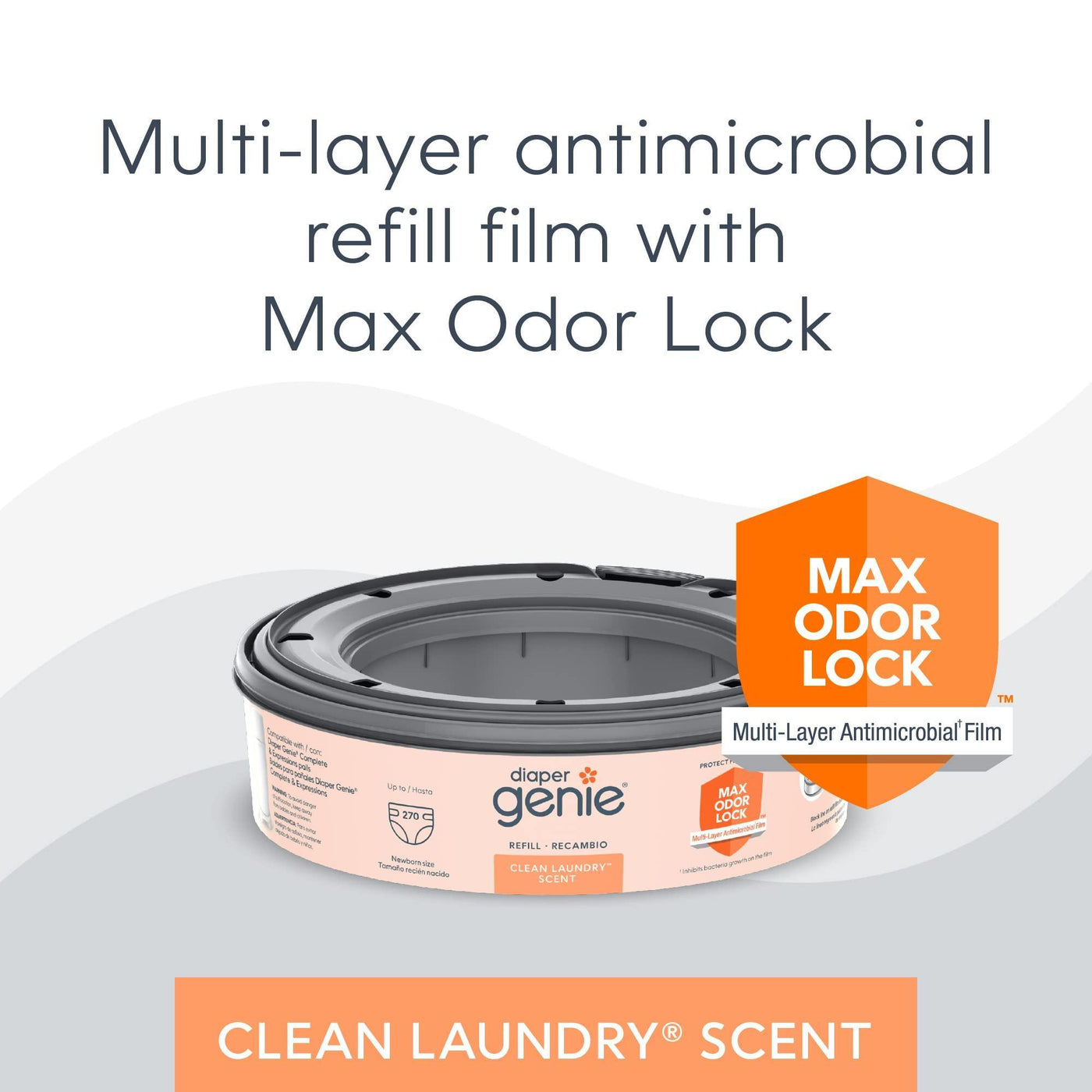 - PREVENT GERM SPREAD: Diaper Genie refill bags feature a built-in antimicrobial to lock-in dirty diaper odor, prevent germ transmission, and inhibit bacterial growth on the film