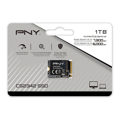 The PNY CS2342 is highly durable, less likely to fail, and features a 5-year limited warranty or TBW. The PNY CS2342 is engineered with the same level of quality and durability that our customers have enjoyed for over 40 years. We've taken the world's most advanced NAND flash and refined the CS2342 to achieve a higher threshold for endurance and reliability. PNY's extensive testing and rigorous validation process ensures compatibility across various platforms and multiple operating systems.