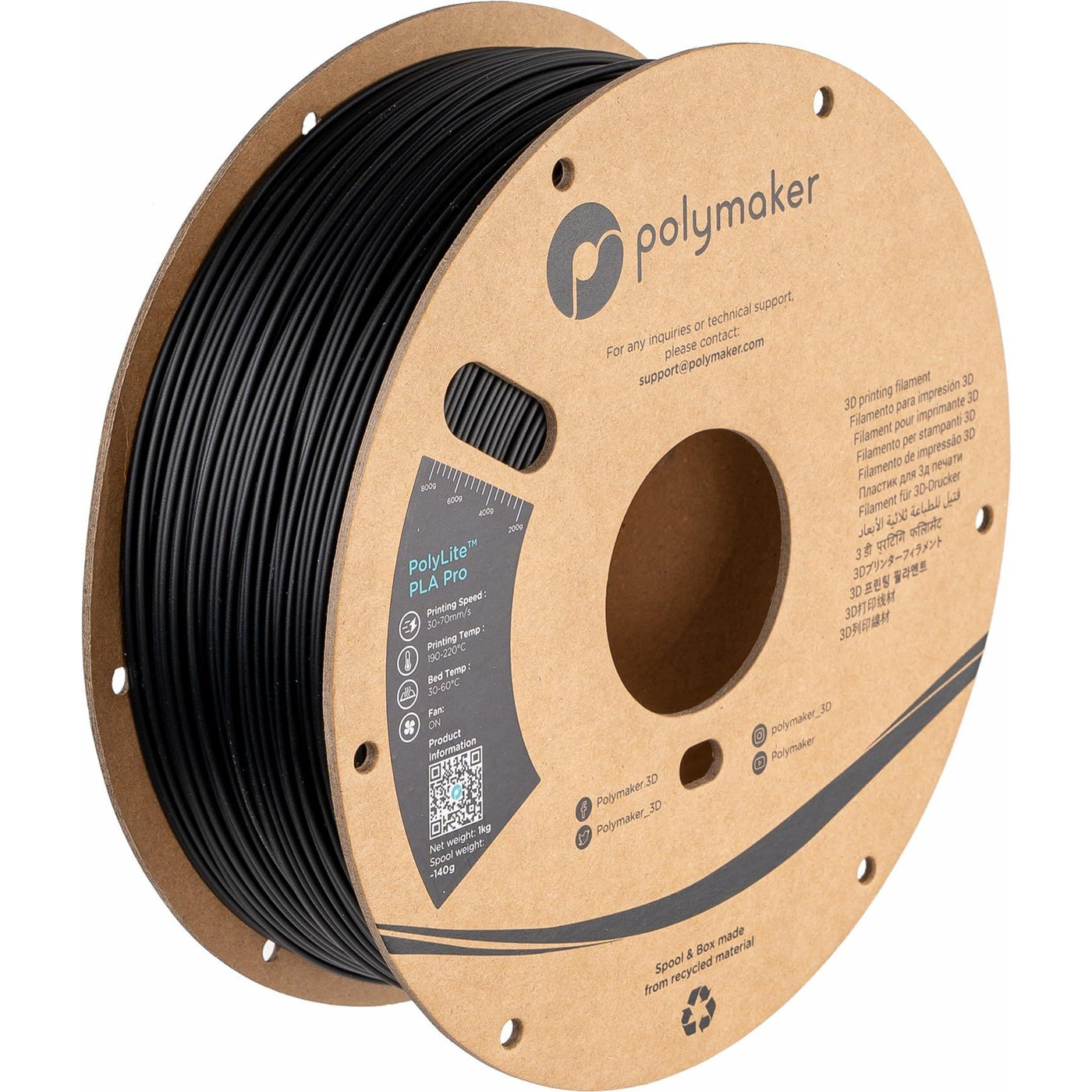 Polymaker PLA PRO Filament 1.75mm 1kg, Tough & High Rigidity Black 3D Printing Filament, PolyLite PLA PRO 3D Printer Filament 1.75mm, Print with Most 3D Printers Sale