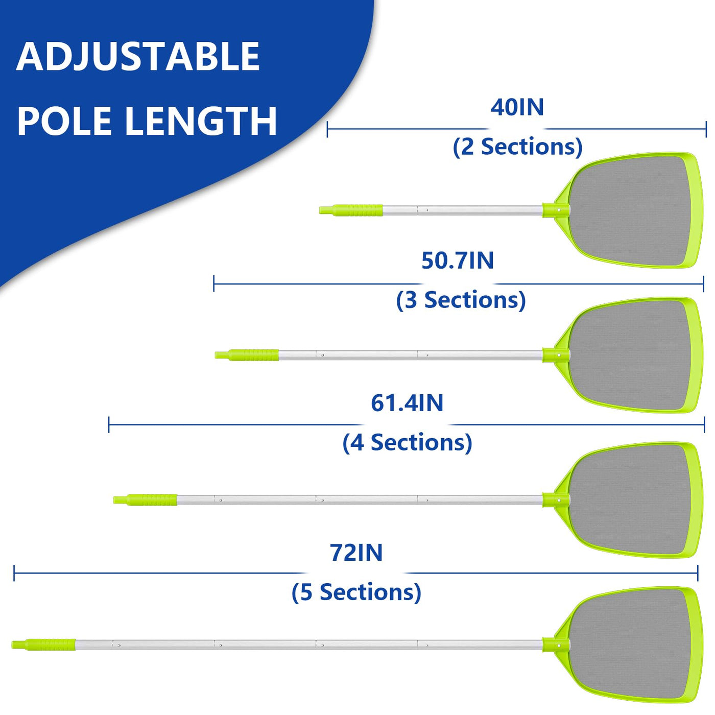 - Adjustable Length (40 to 72 for Versatile Reach – Easily adapt the pool skimmer net’s length to clean hard-to-reach areas, making it a versatile choice for both pool accessories and pond net applications.