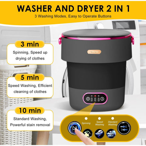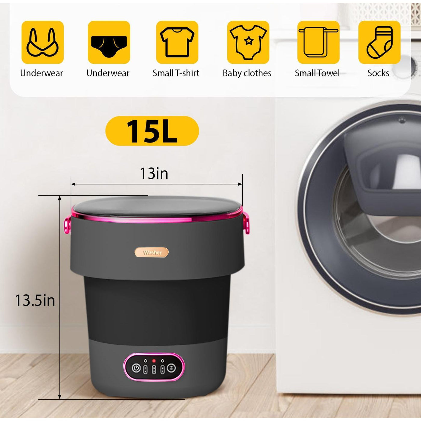 - Pro 15L Spin Power:15L upgraded with spin basket handles 4 bras or 2 small T-shirts. Dorm residents & van-lifers love this portable laundry machine's space-saving efficiency.