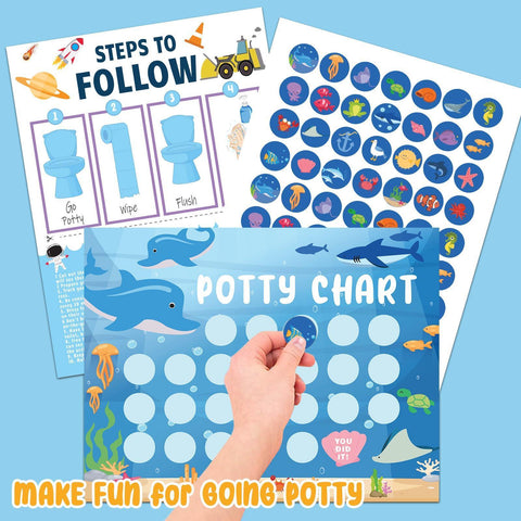 - EFFECTIVE REWARD SYSTEM: When children complete all the potty training steps as per the chart's guidance, they receive lovely stickers as rewards and place them on the reward chart. With each successful training record, children progress towards saying goodbye to diapers.