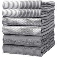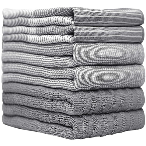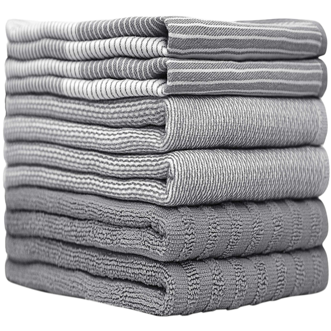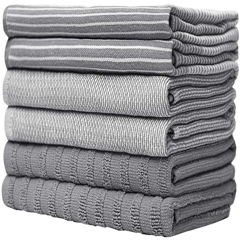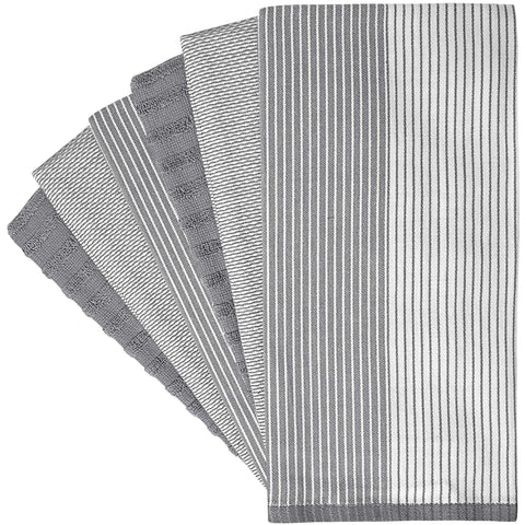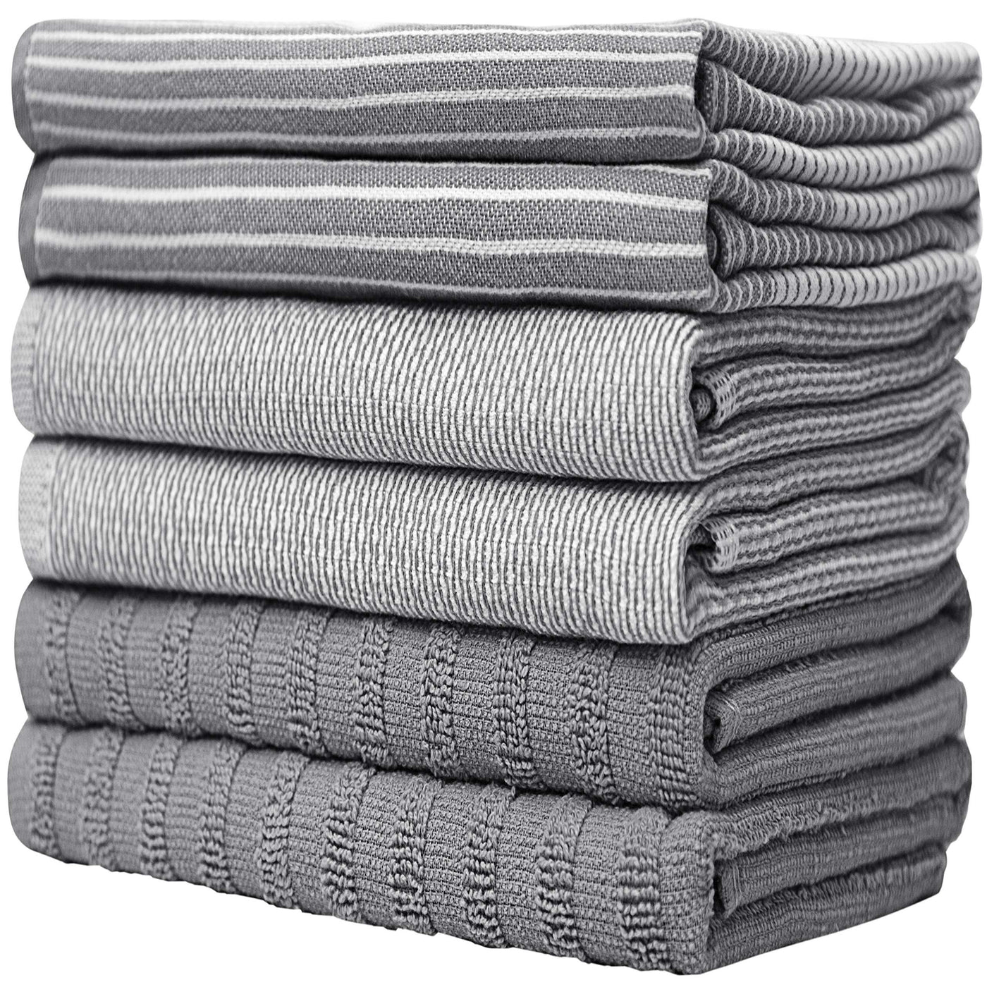 - 6-PACK: Contains three different textures of towels, including a flat towel and terry towel. Great for drying dishes, cleaning kitchen countertops, wiping up spills, and more
