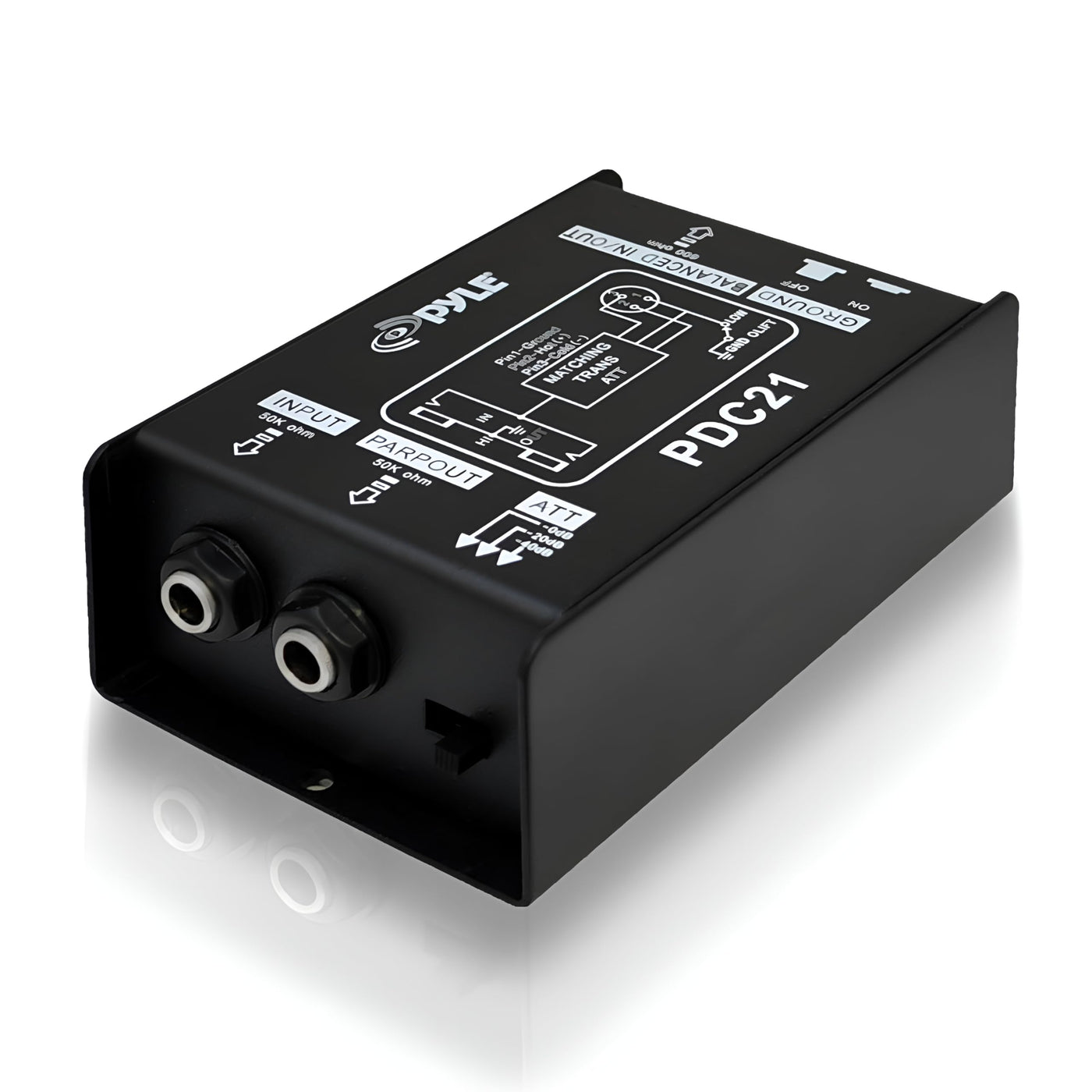Pyle Premium Direct Injection Audio Box - 2.36inch x 4.09inch Passive DI Unit Hum Eliminator w/ Input Attenuator to Connect Guitar & Bass, 1/4'' Impedance Transformer Connector to Balanced & Unbalanced XLR