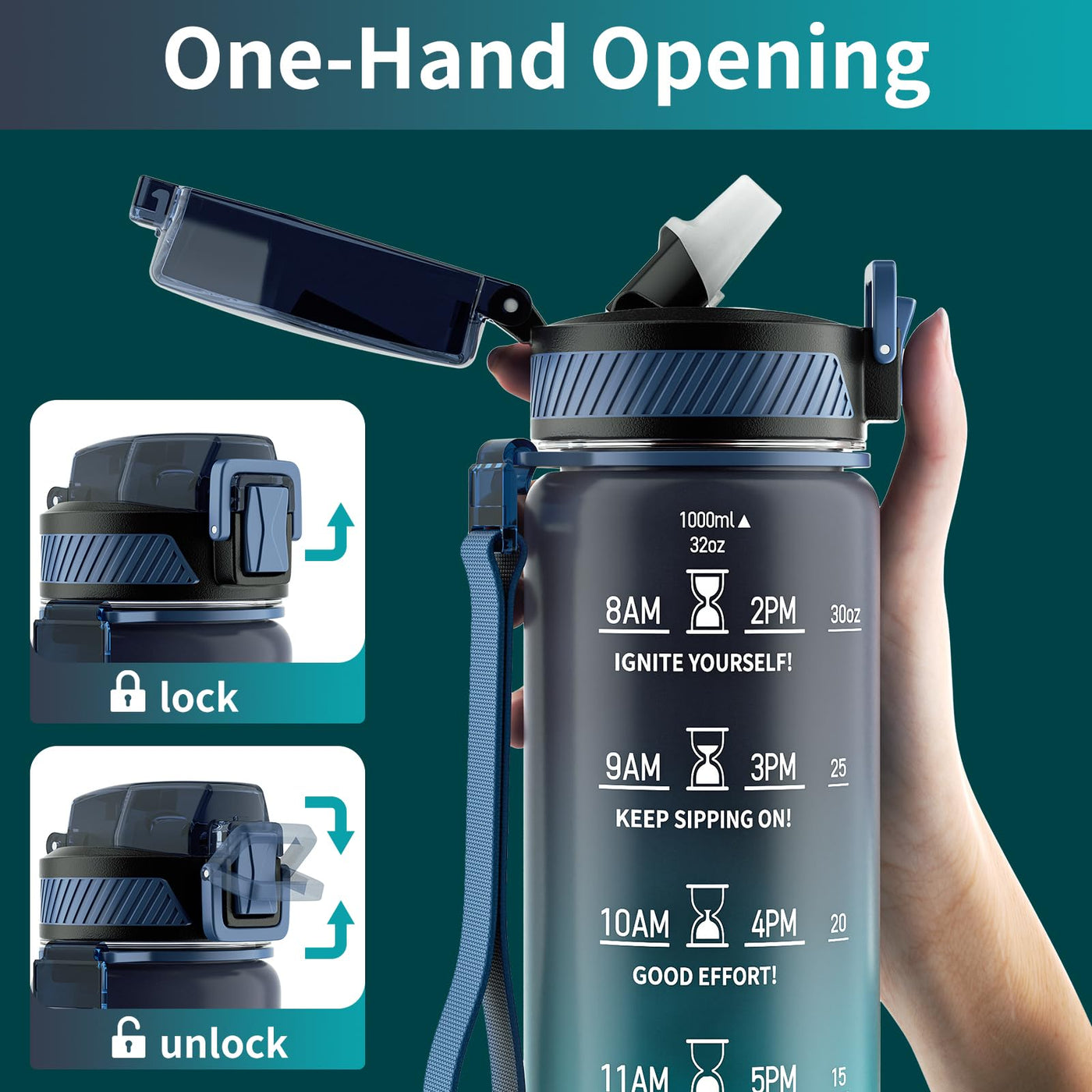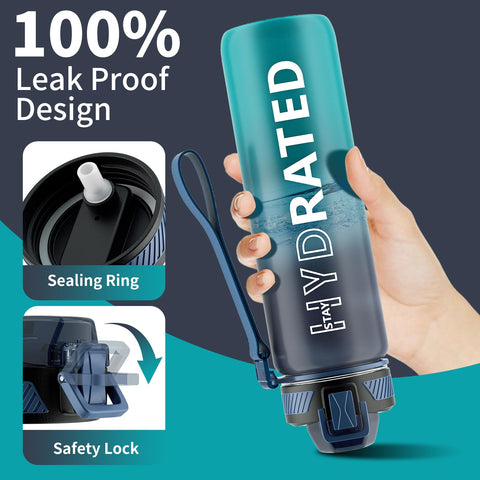- Easily Open & Leakproof: Our motivational water bottles flip-top lid is designed with a secure lock, which effectively preventing dust and leak-proof. It can be easily opened with one hand. Our sports water bottles for school has a silicone nozzle with a straw inside to prevent turbulent water flow