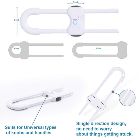 - PACKAGE: Every order includes two portable baby handle door locks. You can adjust the lock from largest 6 inches to smallest 1 inch and anywhere in between. This ensures that you always have the right sliding baby latch to fit your cabinet or drawer