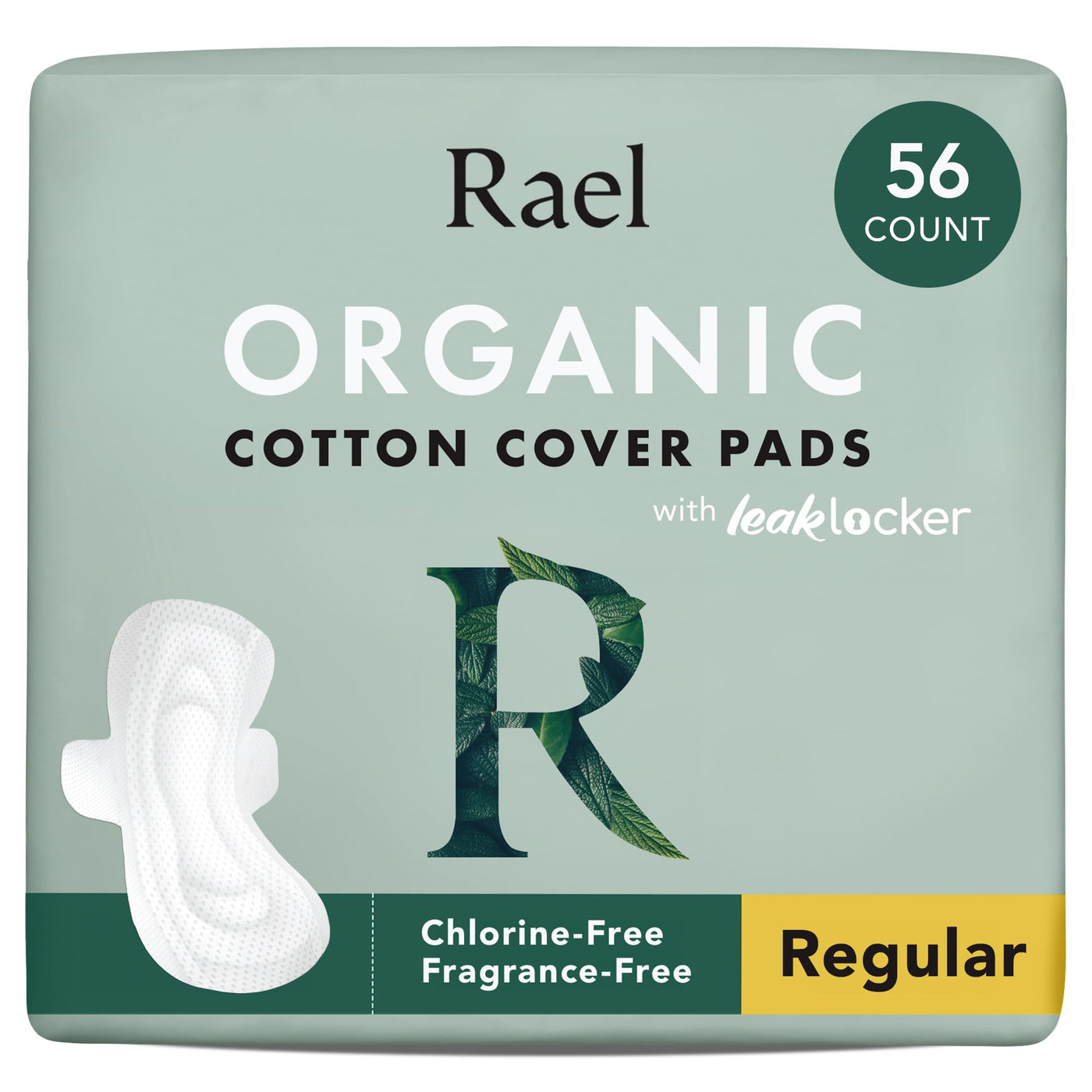 Rael Organic Cotton Cover Pads - Regular Absorbency, Unscented, Ultra Thin Pads with Wings for Women (56 Total) Sale