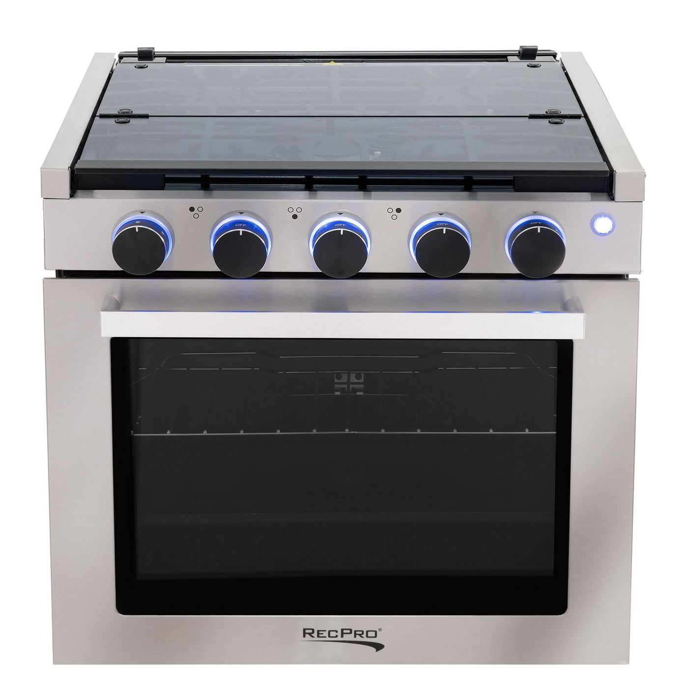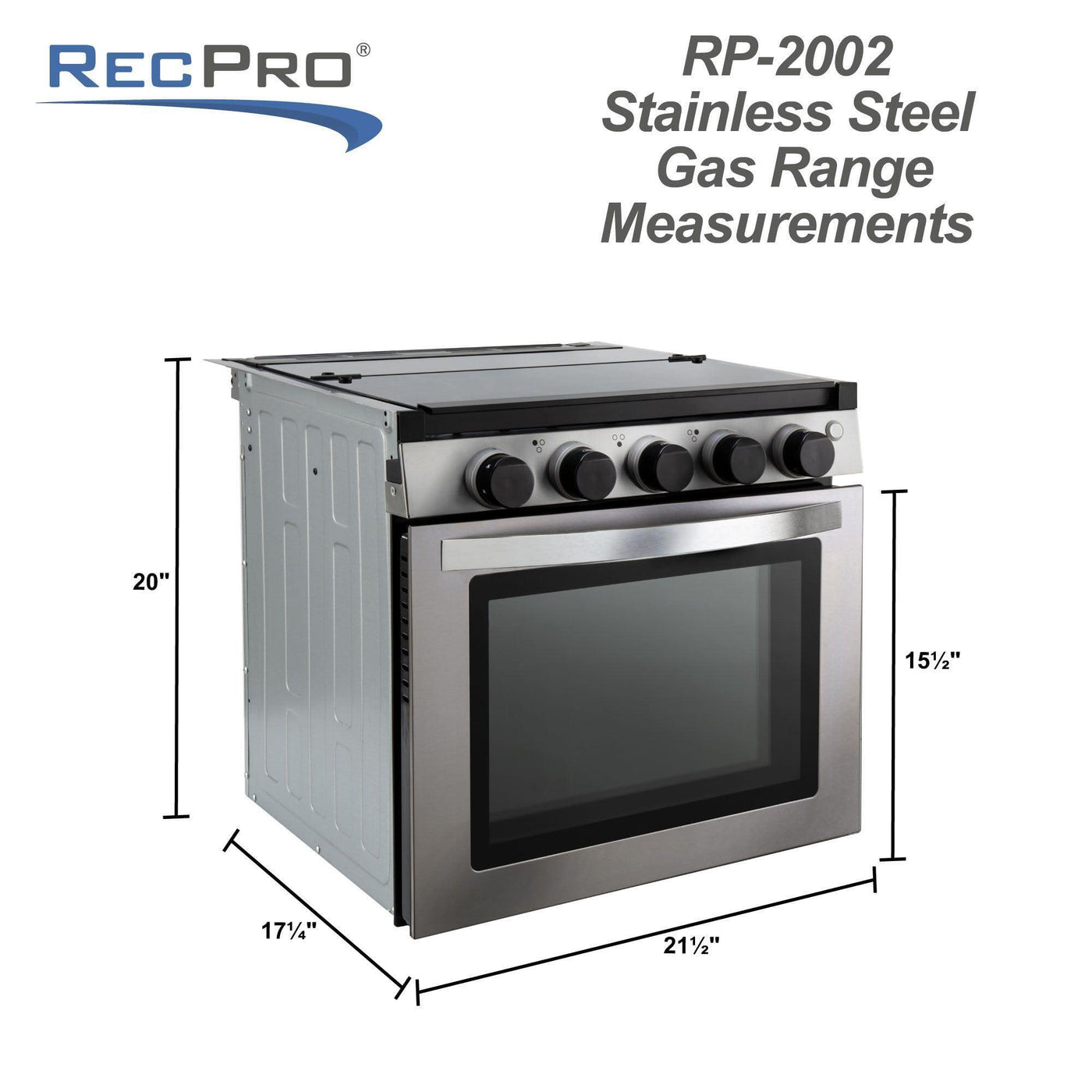 RecPro RV Stove | Gas Range 21" Tall | Optional Vented Range Hood | 3 Burner | 1.8 Cu. Ft | 7100 BTU | Black or Silver Color Options (Silver, No Vented Range Hood) Sale