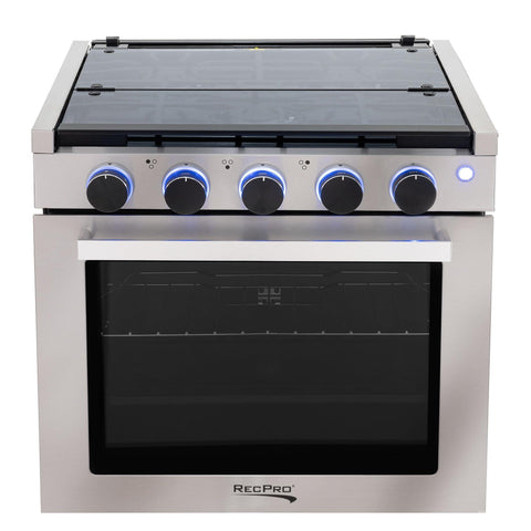 RecPro RV Stove | Gas Range 21" Tall | Optional Vented Range Hood | 3 Burner | 1.8 Cu. Ft | 7100 BTU | Black or Silver Color Options (Silver, No Vented Range Hood)