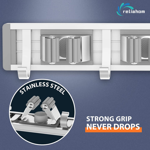 - Sturdy: Reliahom broom holder is made of metal base board, Stainless steel grip, metal Hooks. It is strong, waterproof, sturdy