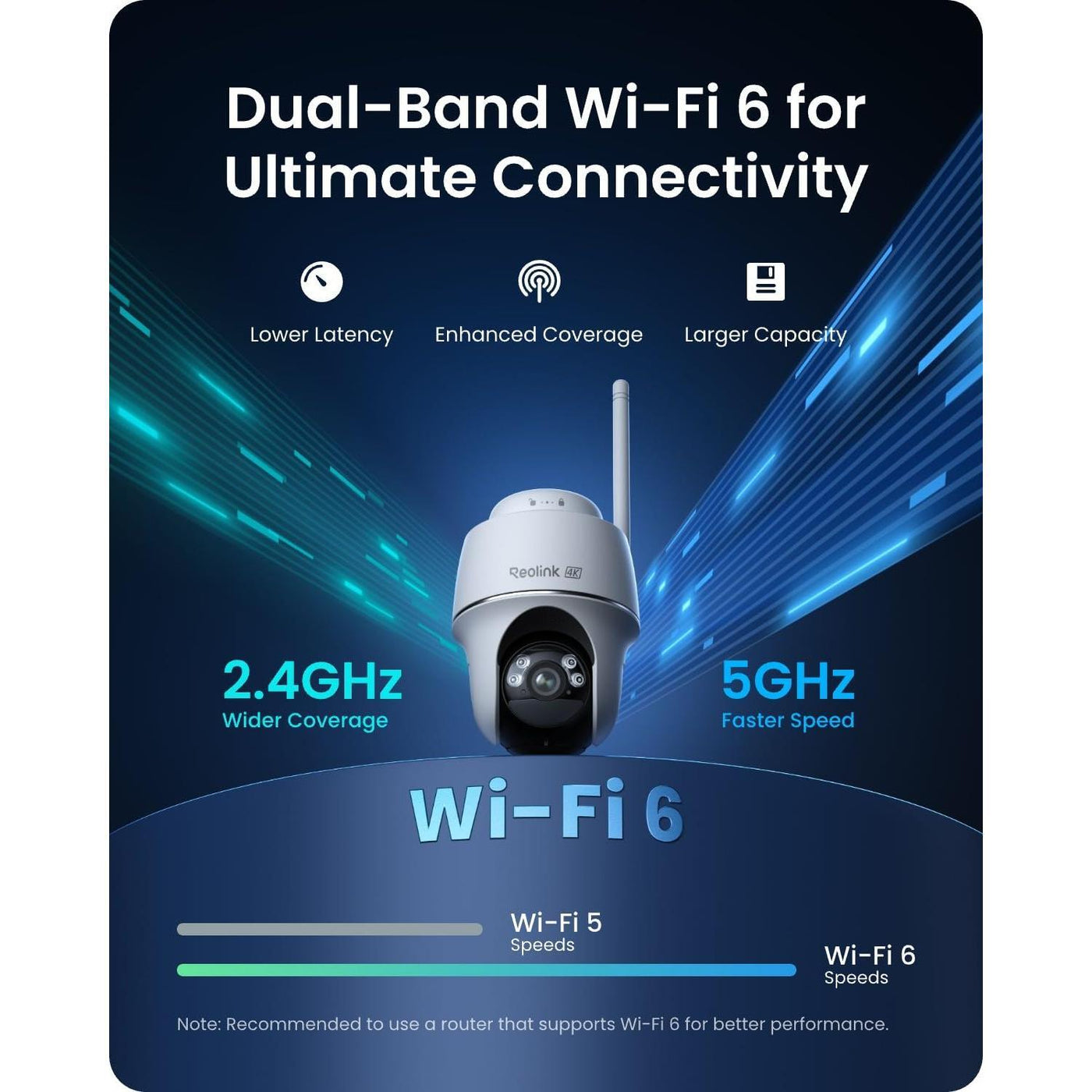REOLINK First 4K Solar Security Cameras Wireless Outdoor, Argus PT Ultra+ 3W Solar Panel, 360° Pan Tilt Auto-Tracking, 8MP Color Night Vision, 2.4/5 GHz Wi-Fi 6, No Monthly Fee, Home Hub Compatible
