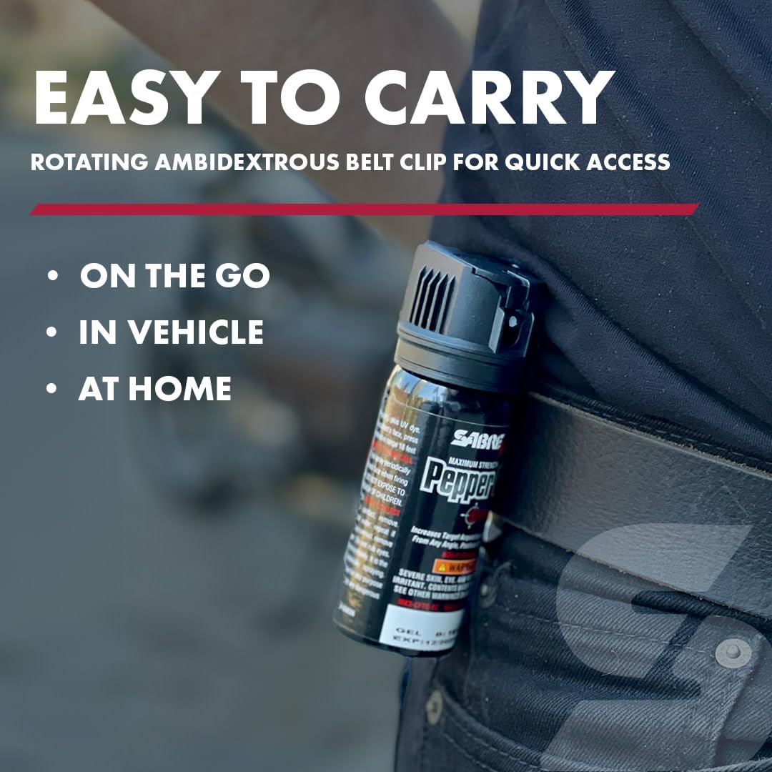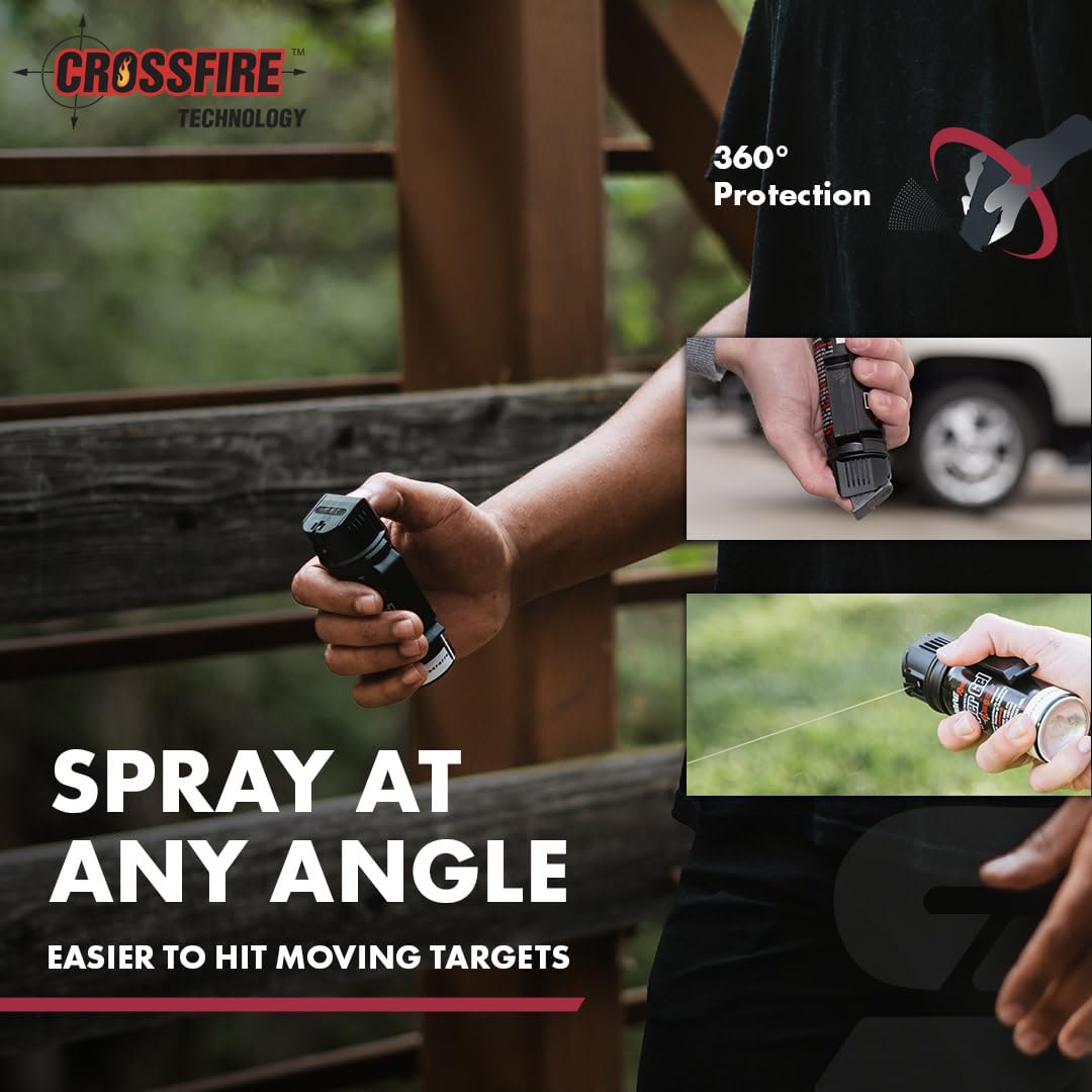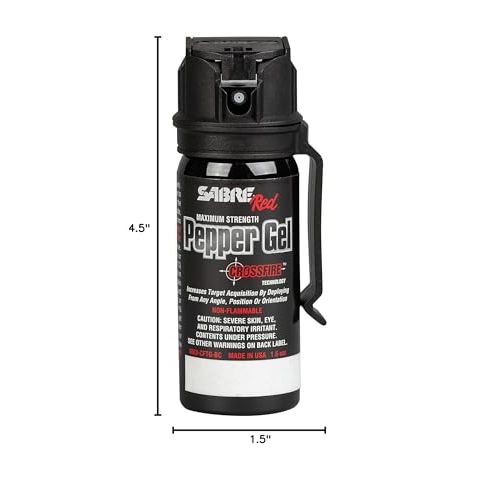 SABRE Crossfire Pepper Gel for Self Defense, Deploys At Any Angle, Maximizes Target Acquisition Against Threats, Easy Carry Belt Clip, Safety Flip Top, Max Police Strength Pepper Spray, 1.5 fl oz