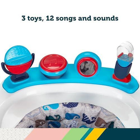 - PLAYTIME FUN Our child walker plays 12 different songs designed to amuse and delight, while stimulating baby’s visual and auditory senses. It includes a large tray that’s great for snacks, with plenty of room for baby to play with toys.