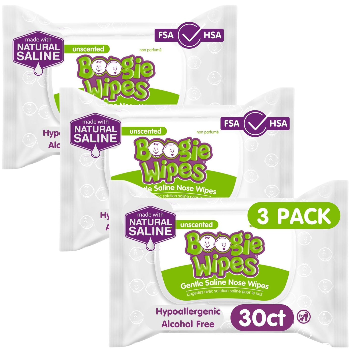 - BABY WIPES: Boogie Wipes are wet wipes for baby and kids that are made with natural saline, which is gentle on skin, helps clean and dissolve snot and boogers, and wipes away dirt and germs They're gentle enough to be used on noses, faces, fingers and toes whenever cleaning is necessary