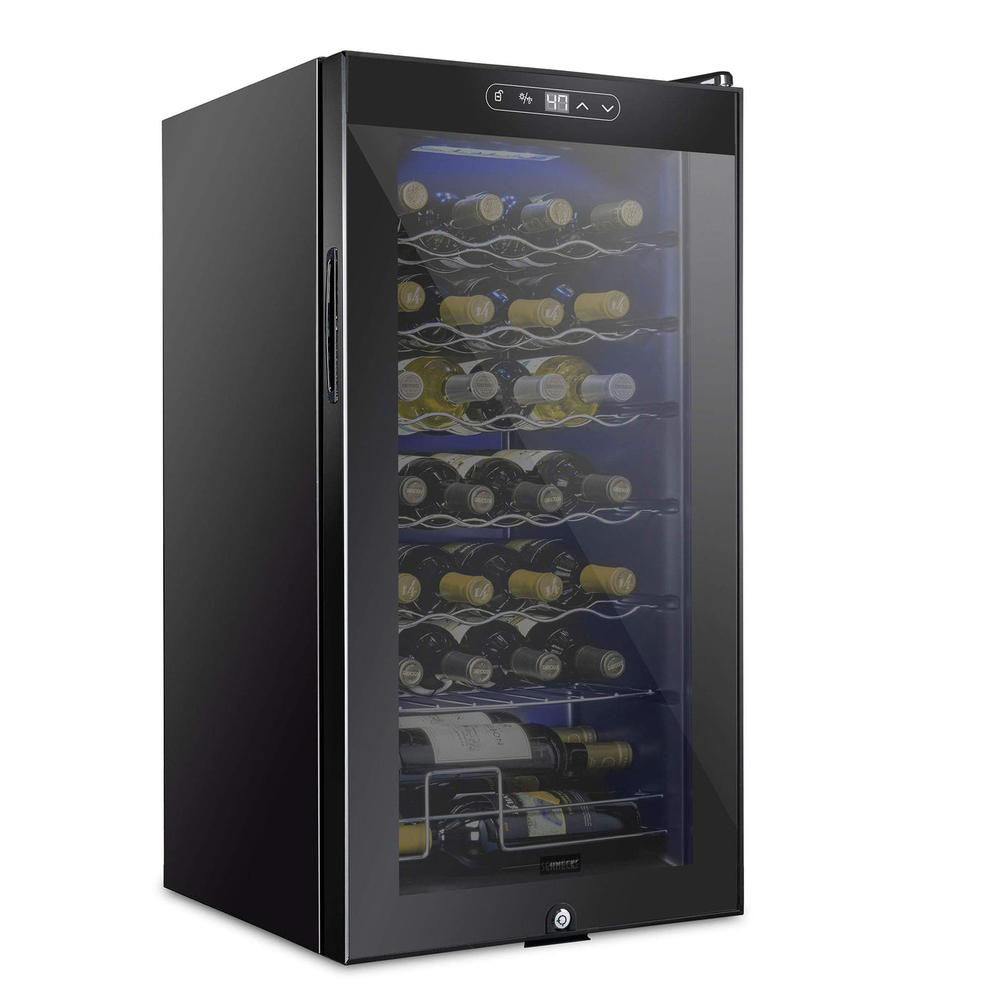 - TEMPERATURE STABILITY - Schmecke wine coolers’ compressor technology ensures temperature is not affected by outside heat sources, and reaches temperatures low enough to house sparkling white wines with a 41°F to 64°F temperature range!