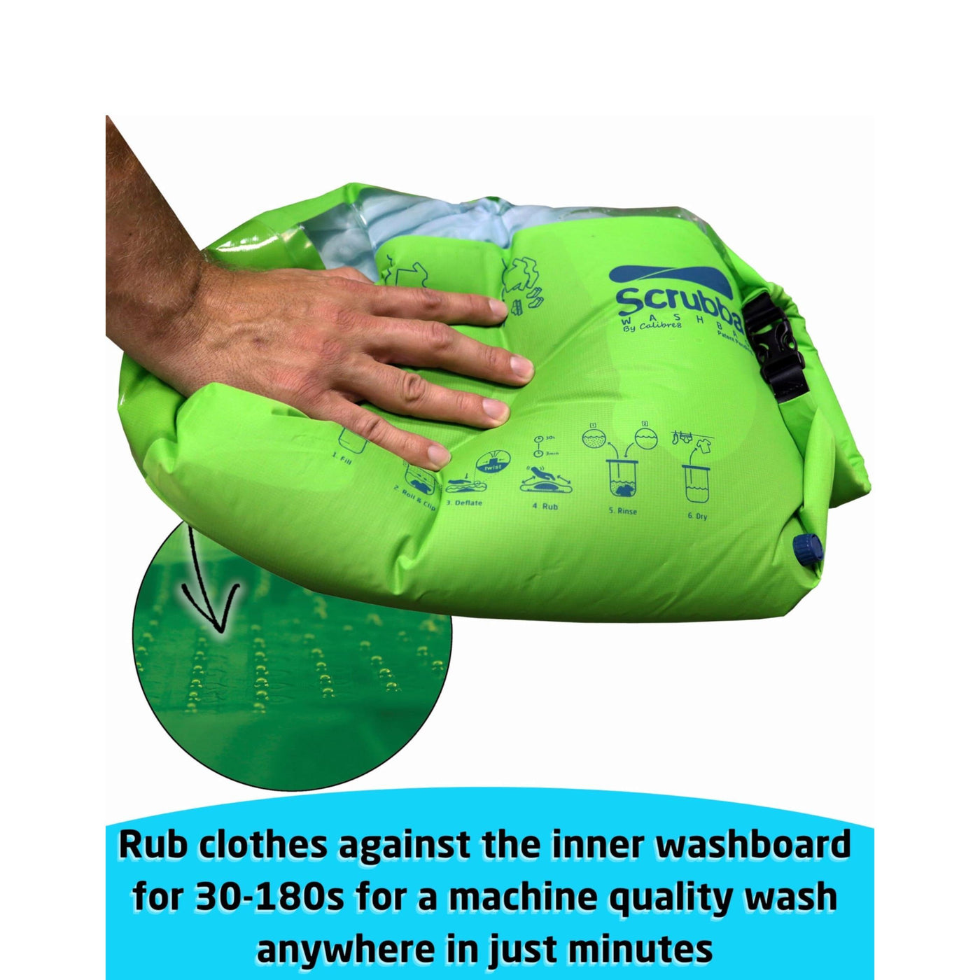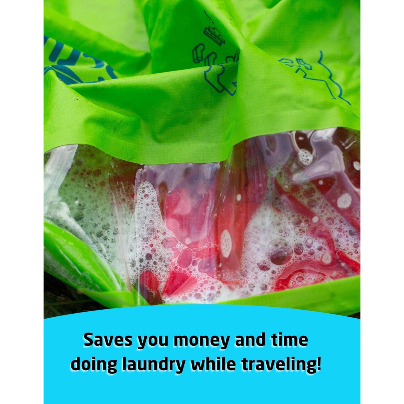 - FAST & CONVENIENT: Experience a machine quality wash in just minutes with our patented washboard-in-a-bag design. Perfect for hotels, hostels, camping, backpacking, dorm rooms, RV and mini scout trips. Your portable washer anytime, anywhere.
