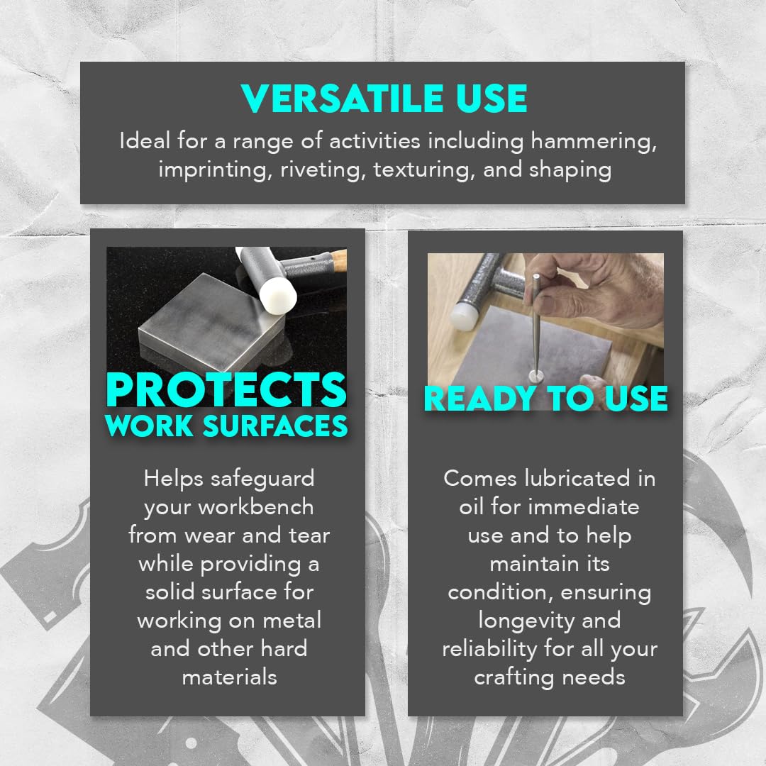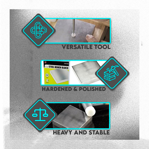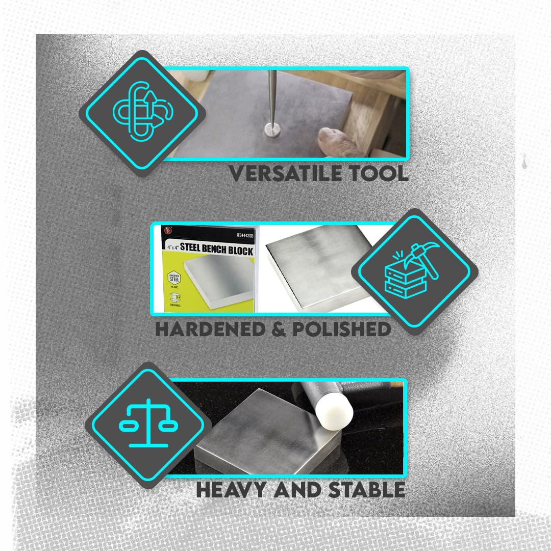 SE 4" x 3/4" x 4" Steel Bench Block - Heavy-Duty Tool for Jewelry Making, Hammering, and Shaping - JT34443SB