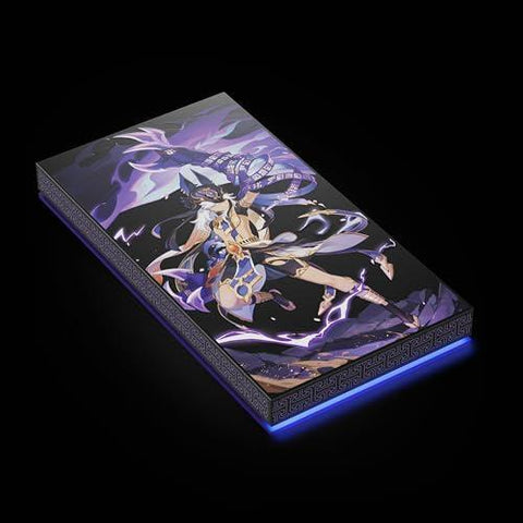 Details: Tilt the scales of justice in your favor with the officially licensed Genshin Impact Limited Edition External SSD. Punish transgressions at lightning-fast speed alongside Cyno, the General Mahamatra. Features a thunderous 1TB inventory space for equipment, sustenance, or your entire game library, along with LED lighting to bring the darkest truths to light.