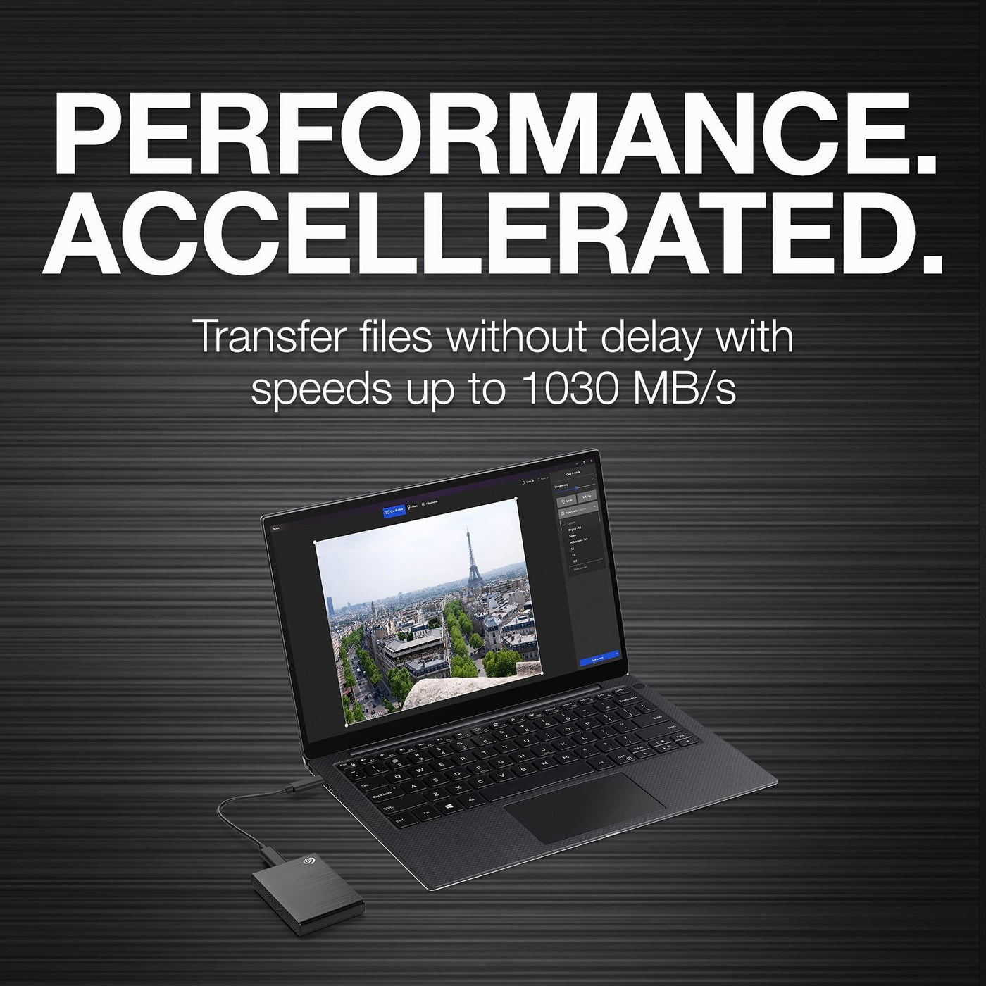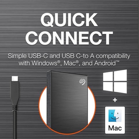 Details: Accelerate your performance and score some downtime with One Touch SSD. With speeds up to 1030MB/s to transfer large files without delay, an Android app to backup photos and videos—freeing up device space, plus up to 2TB capacity and simple plug-n-play USB-C compatibility with Windows and Mac to keep files handy. Travel-sized and styled right, work seamlessly from the drive—wherever you are.