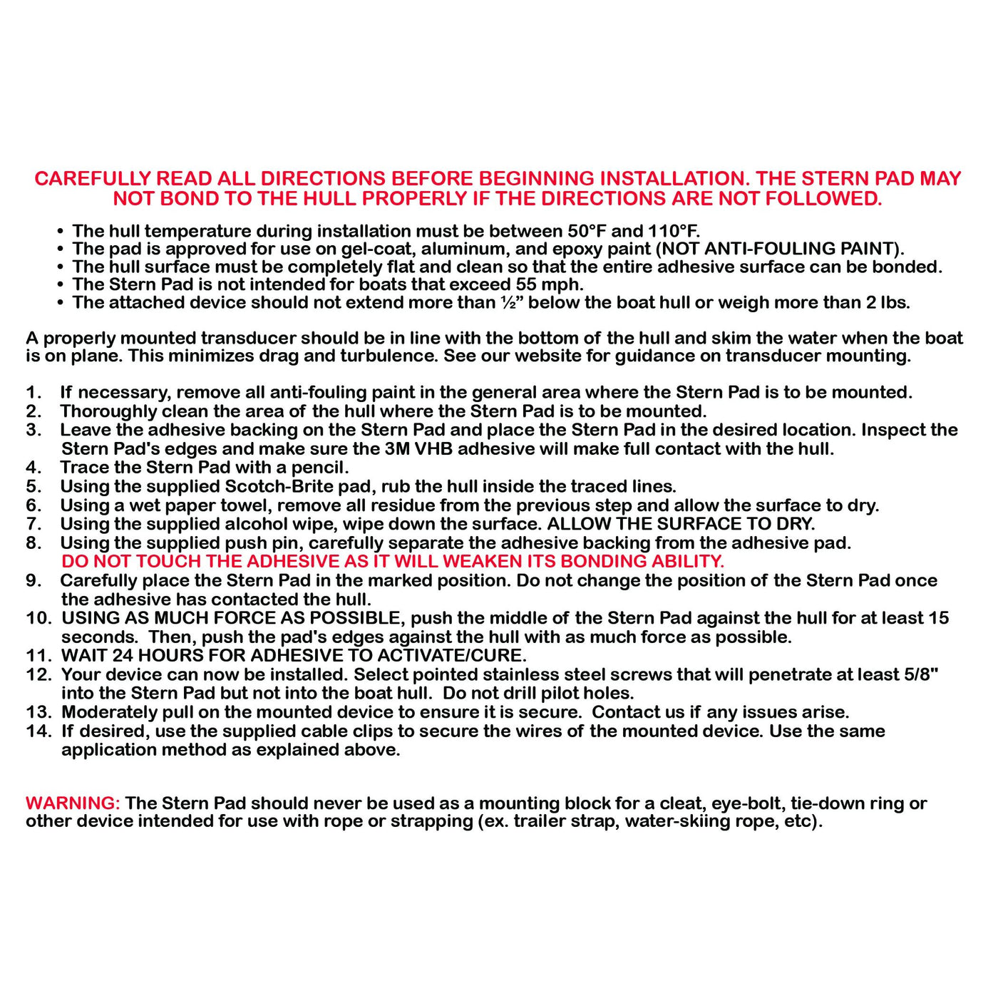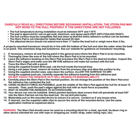 - Includes: (1) Standard Size Black Stern Pad, (3) Screwless Cable Clips, & Install kit