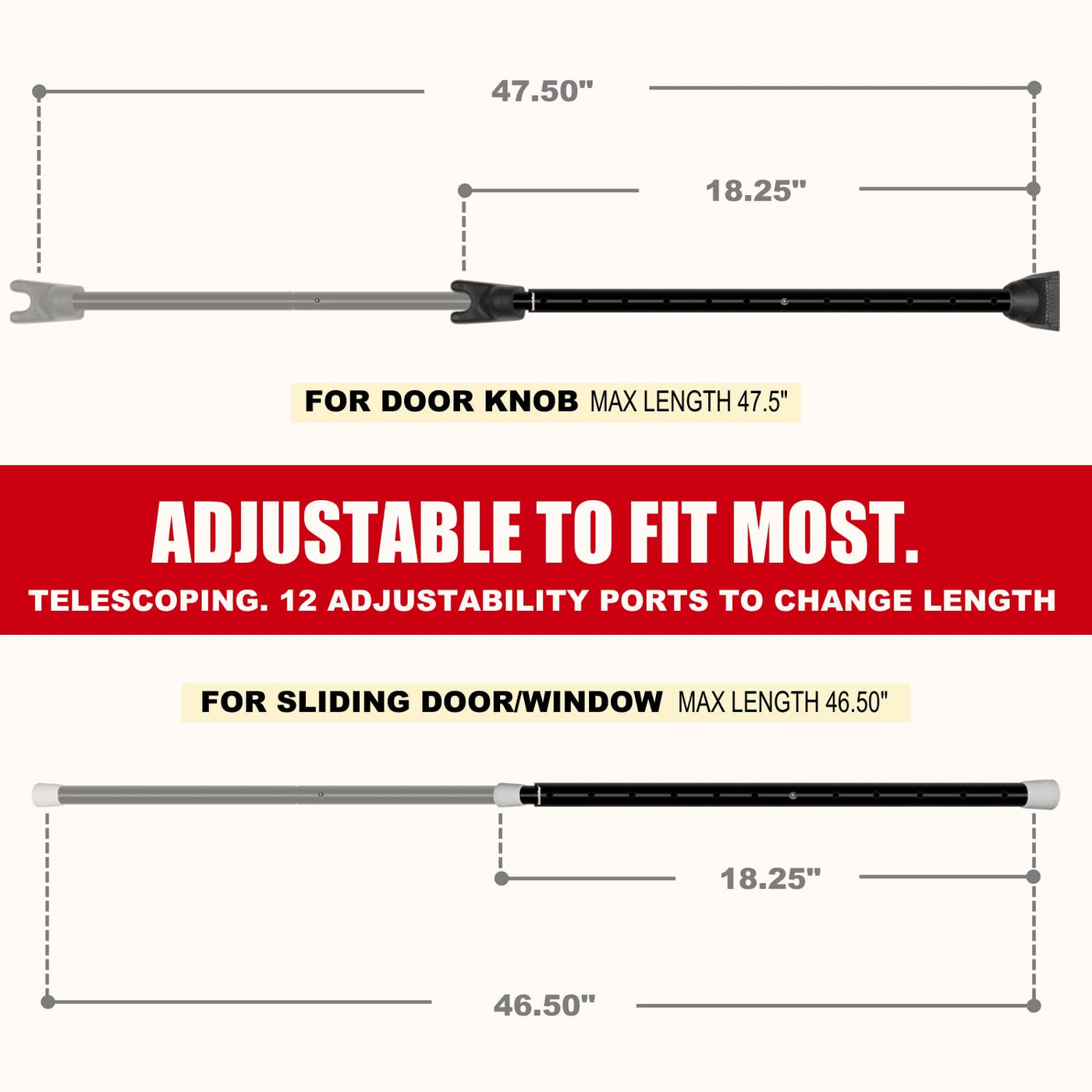 - Easy to Use: Easily props under door knob and easy to remove. Security burglar bar can also be easily adjusted