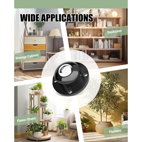 Self Adhesive Caster Wheels, Appliance Rollers for Kitchen Appliances, 1 Inch Swivel Steel Universal Wheel Appliance Sliders, 28 LBS Load Capacity Per Wheel Low Profile Roller (8 PCS, Black)