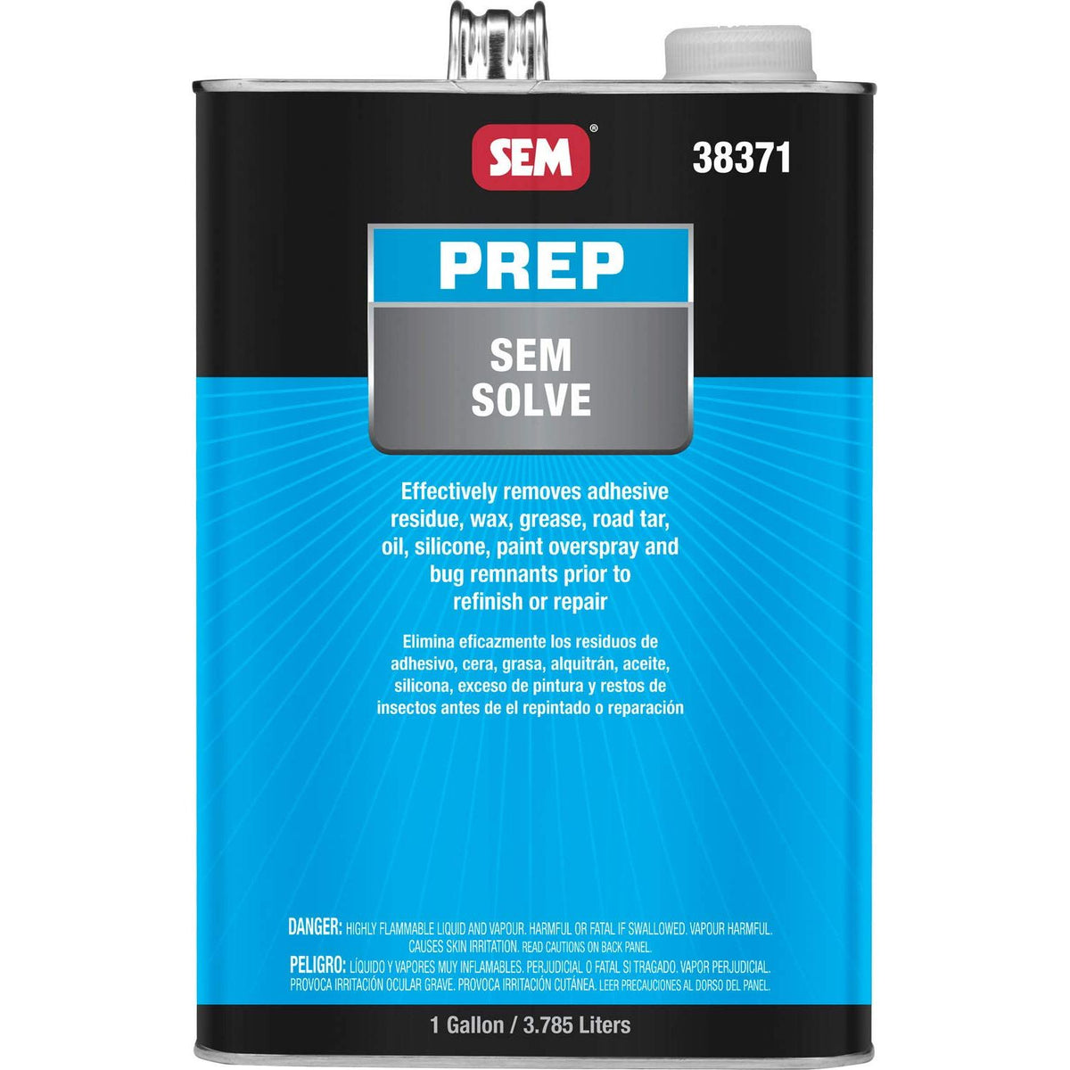 Details: SEM Solve Removes wax, grease and solvent soluble contaminants . Apply and wipe dry . Leaves no residue 38371