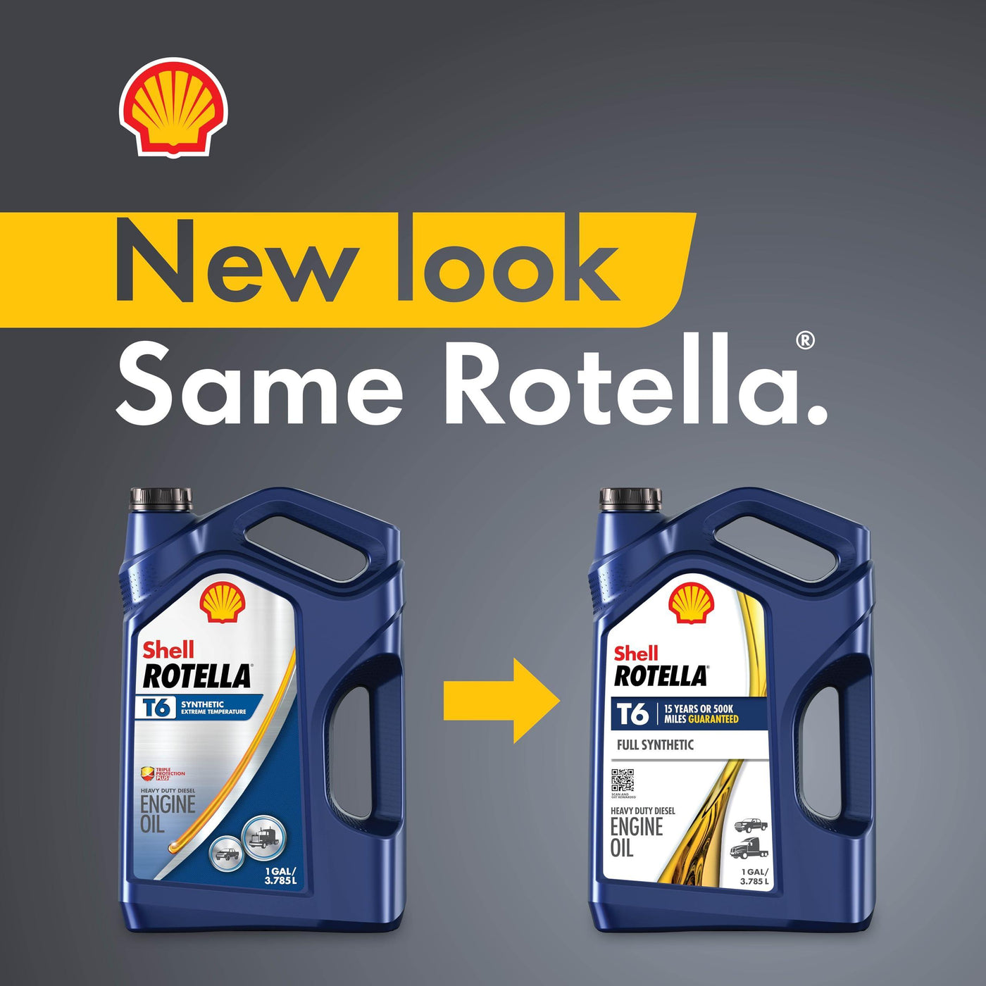 Details: Shell Rotella T6 5W-40 diesel engine oil is a full synthetic motor oil that features exclusive Triple Protection Plus technology. It's formulated with fully synthetic base oils plus advanced additives to protect against wear, deposits, and oil breakdown. It also provides better low-temperature flow and enhanced fuel economy performance of 1.5% (compared to 15W-40 oils). Shell Rotella T6 5W-40 is suitable for new and older diesel-powered vehicles from Class 8 tractor/trailers to heavy-duty diesel pickups, delivery, utility, school bus fleets, and motorcycles. It provides a significantly increased level of protection against harmful engine wear (compared to previous generation API CJ-4 engine oils), and the advanced multi-functional dispersant additives offer an enhanced level of protection against the effects of soot, dirt, and other contaminants. (*Shell Rotella Limited Warranty: Up to 15 years or 500,000 miles, whichever comes first, guaranteed, if you exclusively use Shell Rotella T6 Full Synthetic heavy-duty engine oil and meet enrollment mileage and vehicle manufacture date requirements. Enrollment required. Keep your receipts. Other conditions apply. See Rotella.com/warranty to enroll and for full details and terms.)
