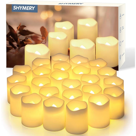 SHYMERY Flameless Votive Candles,Flameless Flickering Electric Fake Candle,24 Pack 200+Hour Battery Operated LED Tea Lights in Warm White for Wedding, Table, Halloween,Christmas Decorations 1.5"X1.7" Sale