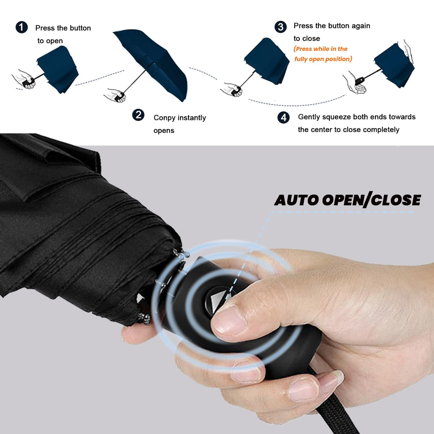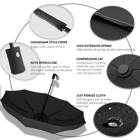 - Upgraded Automatic Umbrella- Easy one hand operation with one auto open & close button, simply touch it to expand or collapse;