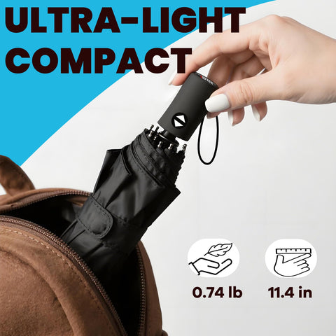 - Waterproof- Put the technology of Teflon to work for you! Waterproof and instantly dry, our Travel Umbrella defends against the elements like nothing else;