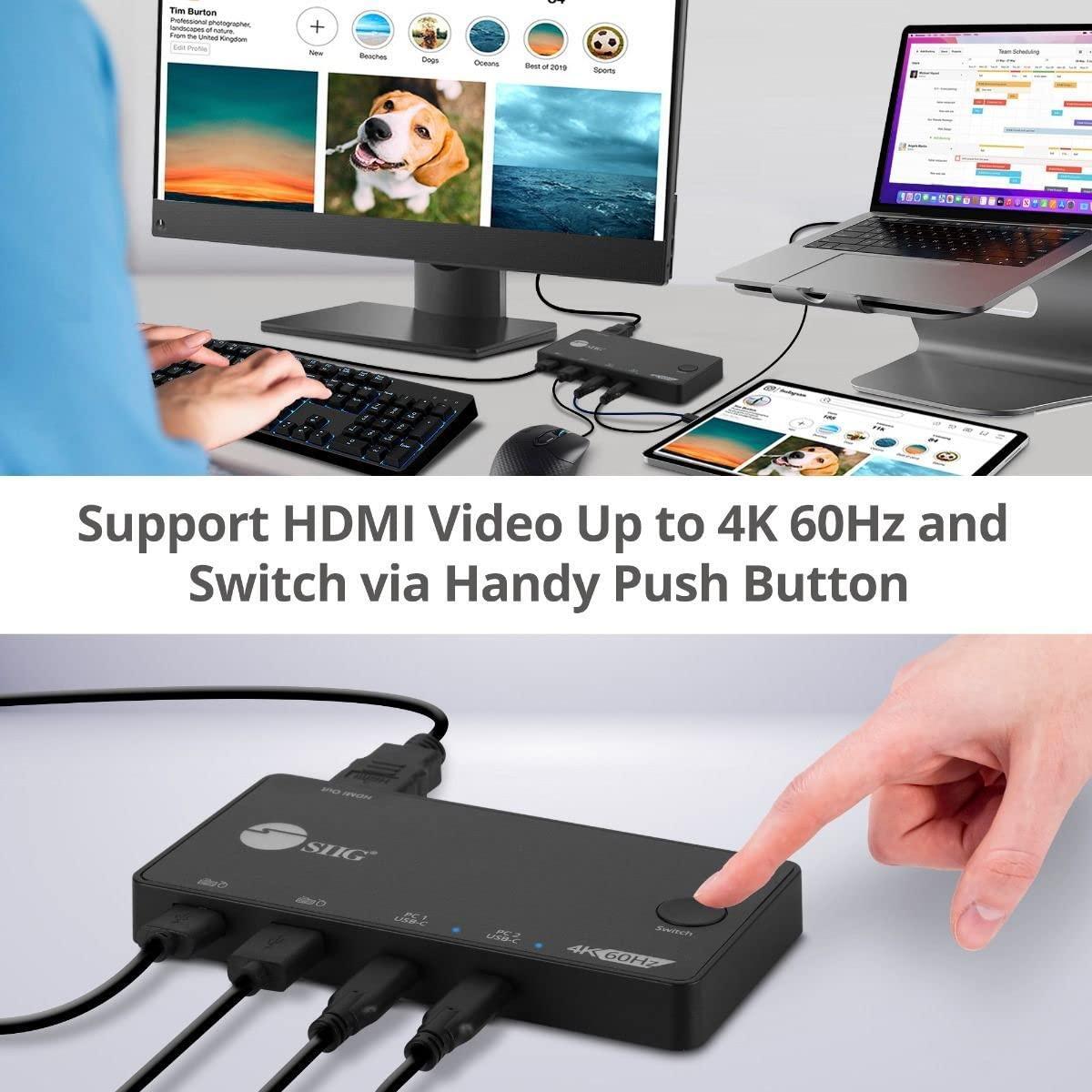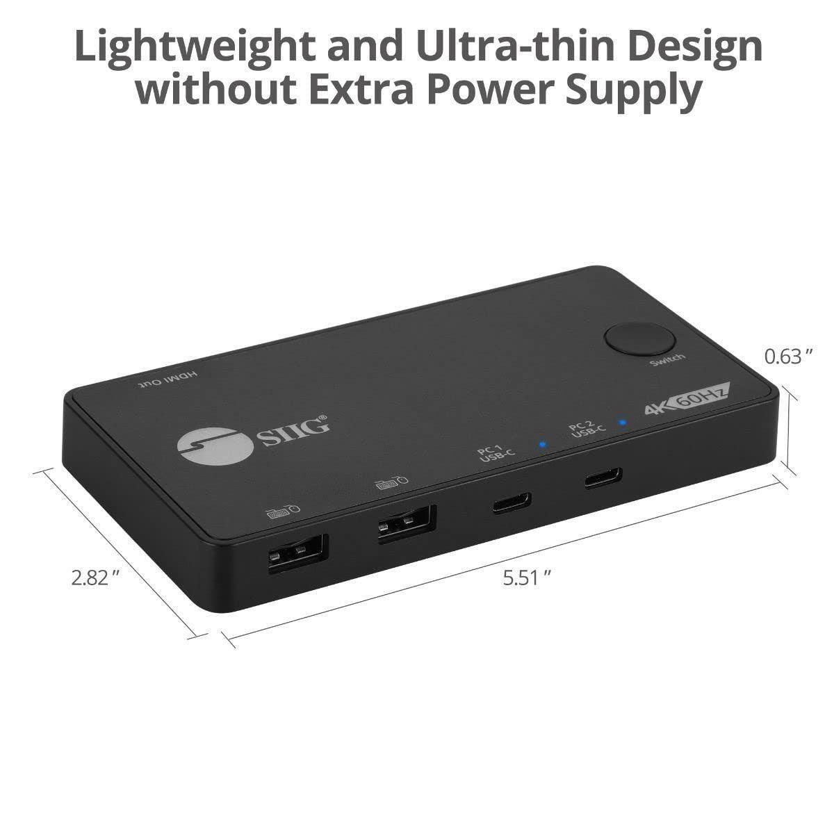 SIIG 2 Port USB-C KVM Switch - 2 Computers to 1 Monitor - 2X USB-A + 2X USB-C - Single 4K 60Hz HDMI, USB-C Bus Powered, Button Control, Thunderbolt 3 Compatible (CE-KV0B11-S1) Sale